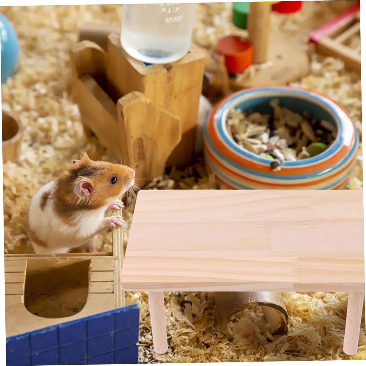 -This wooden platform is suitable for chipmunks, hedgehogs, squirrels, hamsters and other small animals platform s hamster.