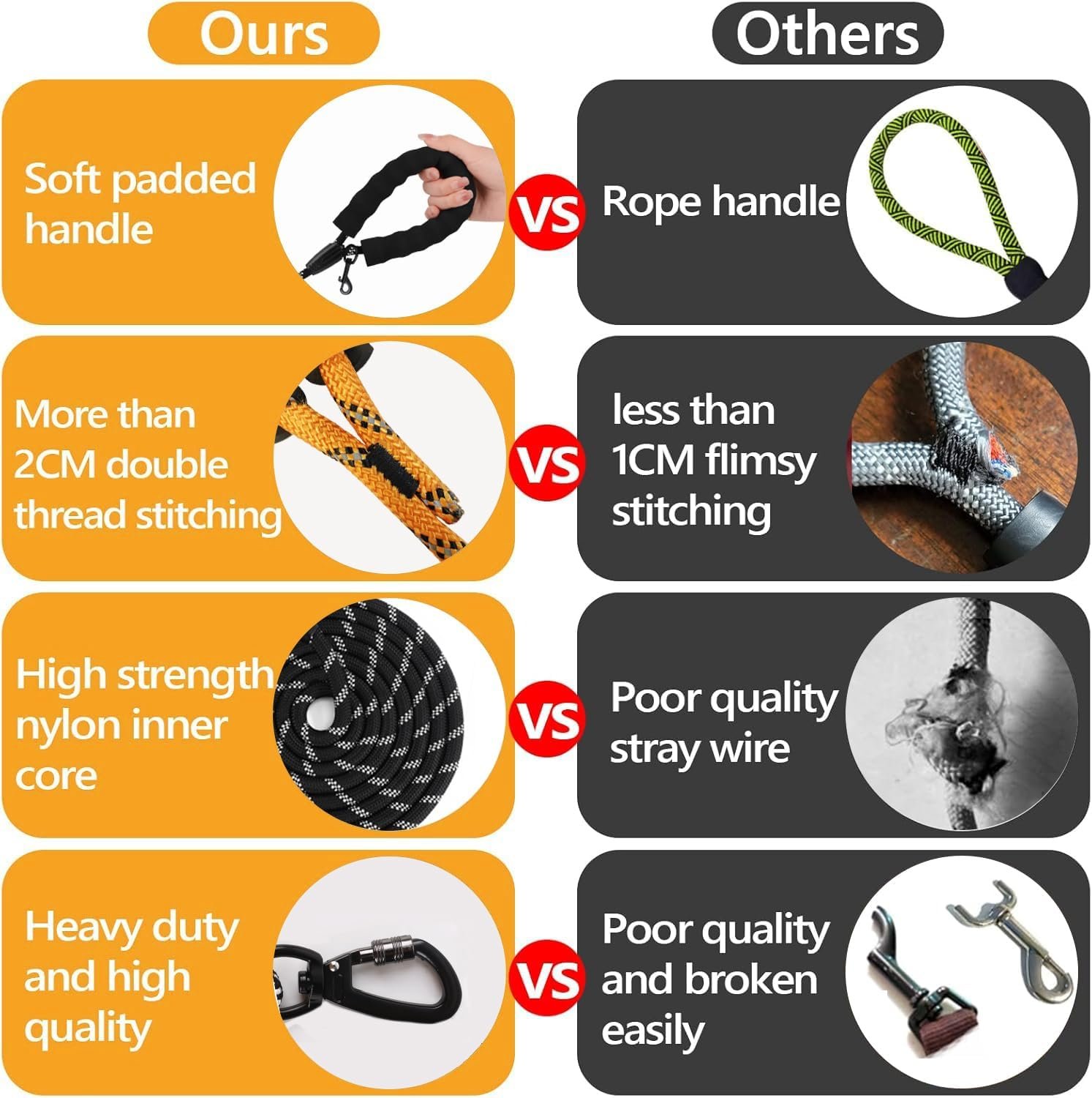🐕Comfortable Padded Grip: This dog training leash adds a comfortable foam grip. When you hold it, it protects your hand from burns if your dog pulls. It allows you to enjoy the beautiful weather for a walk with your dog.