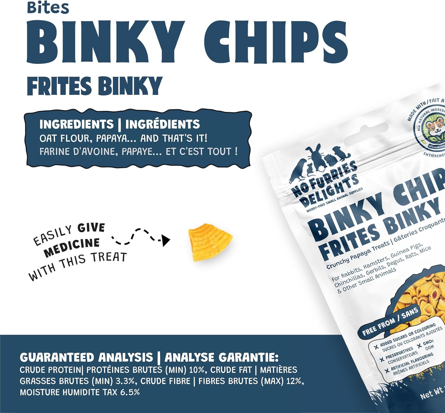 Treats, 100% All Natural Mini Bites for Rabbit Hamster Guinea Pig Chinchilla Pet Rat Mice Gerbil Bird, Healthy Enrichment (50g, Binky Chips Bites)