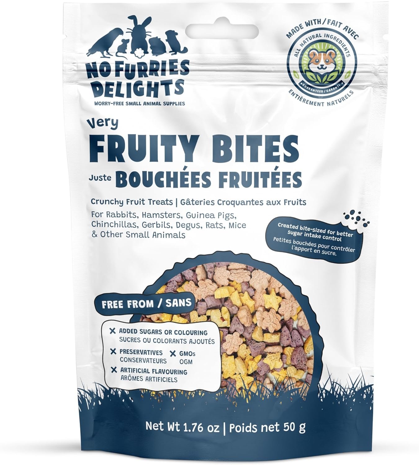 Treats, 100% All Natural Mini Bites for Rabbit Hamster Guinea Pig Chinchilla Pet Rat Mice Gerbil Bird, Healthy Enrichment Bonding Rewarding Training (Very Fruity Variety Pack 50g)