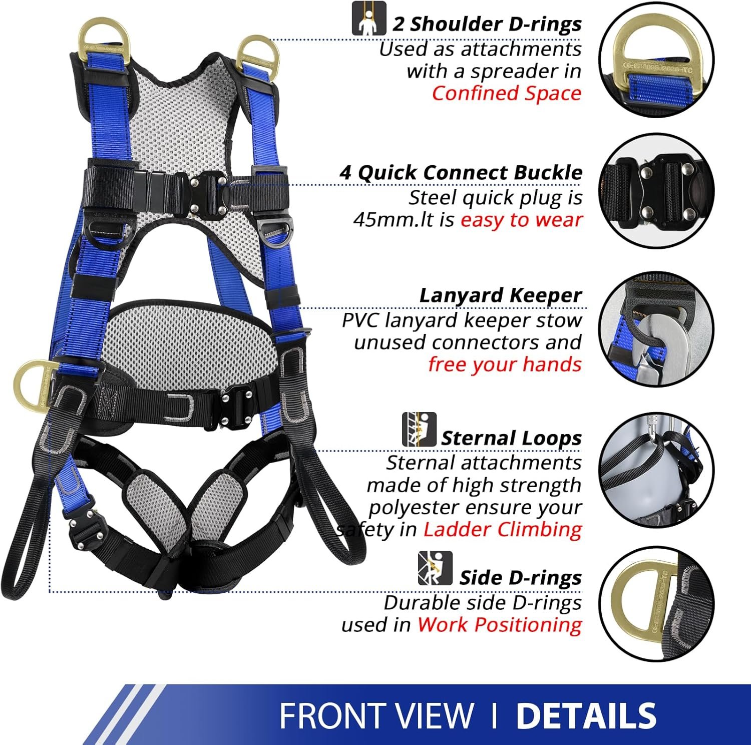 TRSMIMA Safety Harness Fall Protection – Upgrade 4 Quick Release Buckle Construction Full Body Harness with 6 Point Adjustment Dorsal D-ring