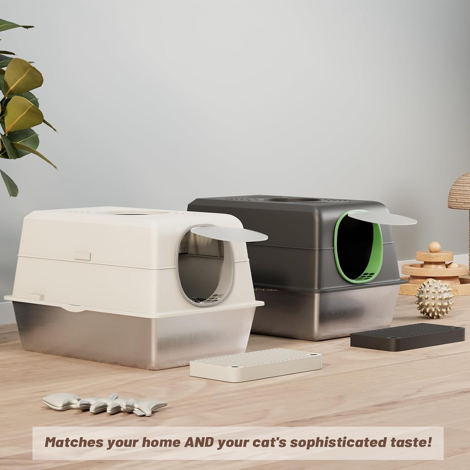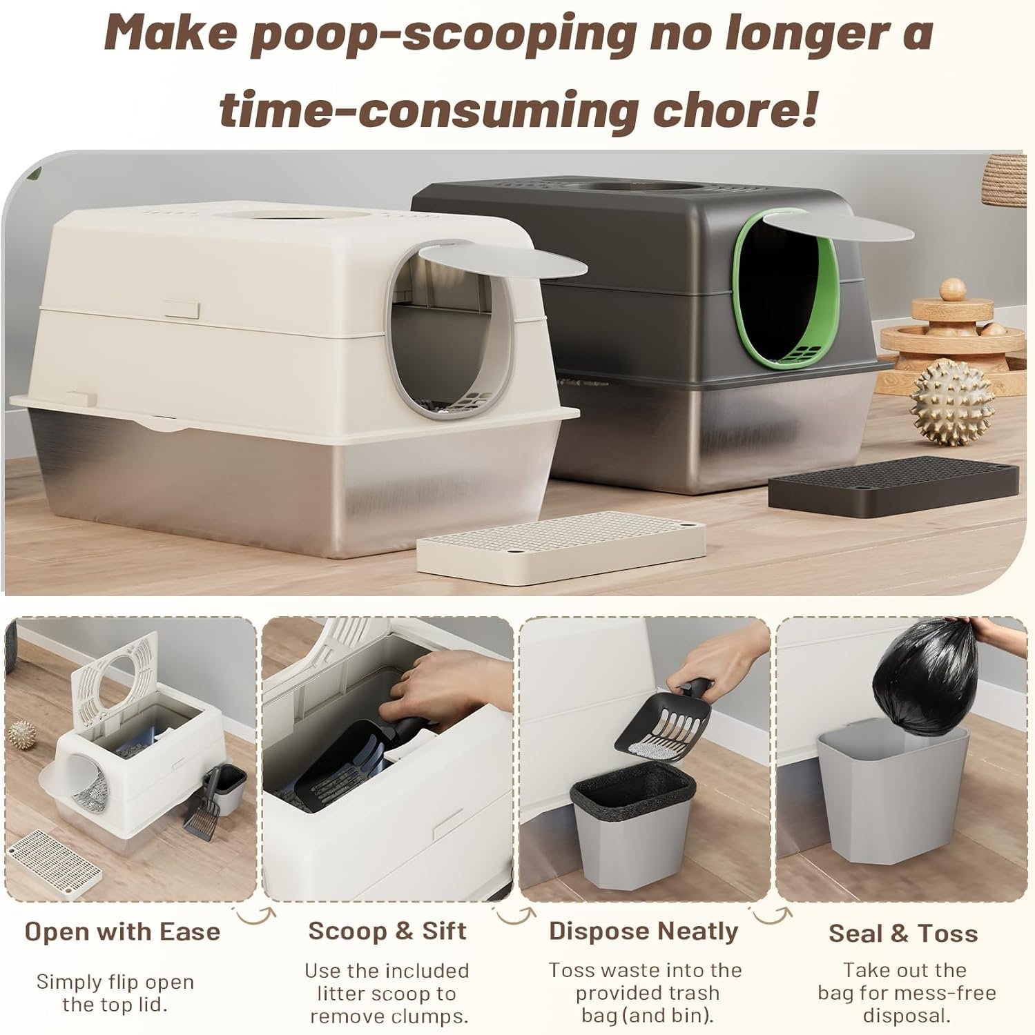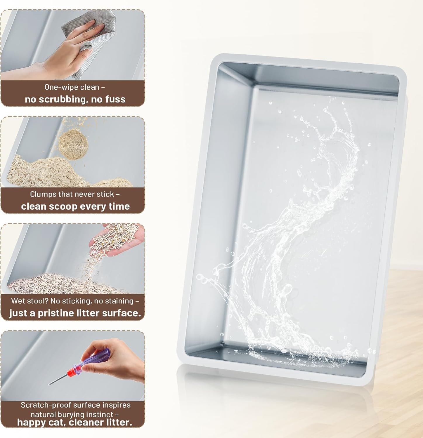 The Last Litter Box You”ll Ever Need:Tired of replacing plastic boxes? Upgrade to our expanded stainless steel model—immune to odors, stains, and warping for over five years. (Optimized with 20 lbs of litter.)
