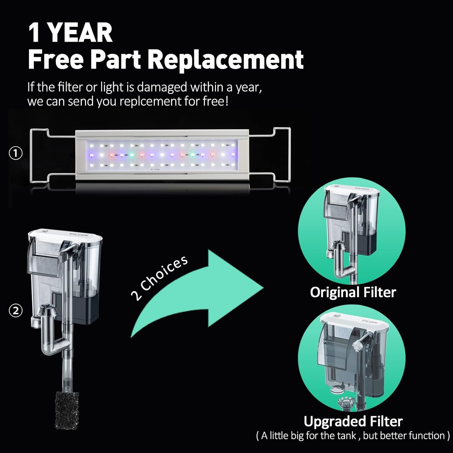LAQUAL provides you with a 90-day money-back policy & 1-year free replacement. If the light or the filter stops working within a year, we will send you a replacement free of charge. If there’s any question, please feel free to message us!