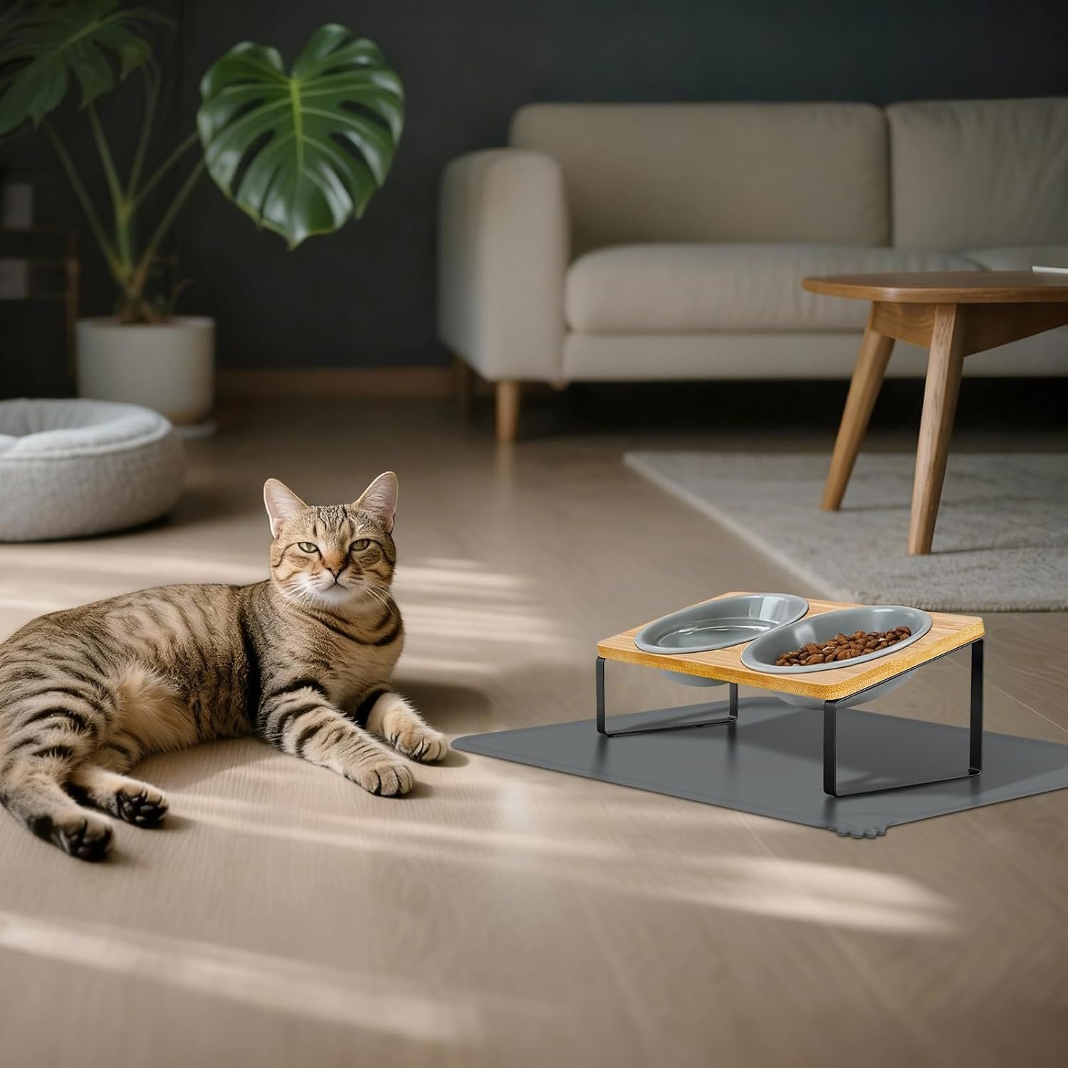 【Easy to Clean Pet Silicone Mat】The 18.9*11.8-inch pet feeding bowl with silicone food mat is easy to clean, which can prevent kittens and puppies from spilling food residues on the floor when feeding, keeping the room or carpet clean and hygienic, and a great value combination.