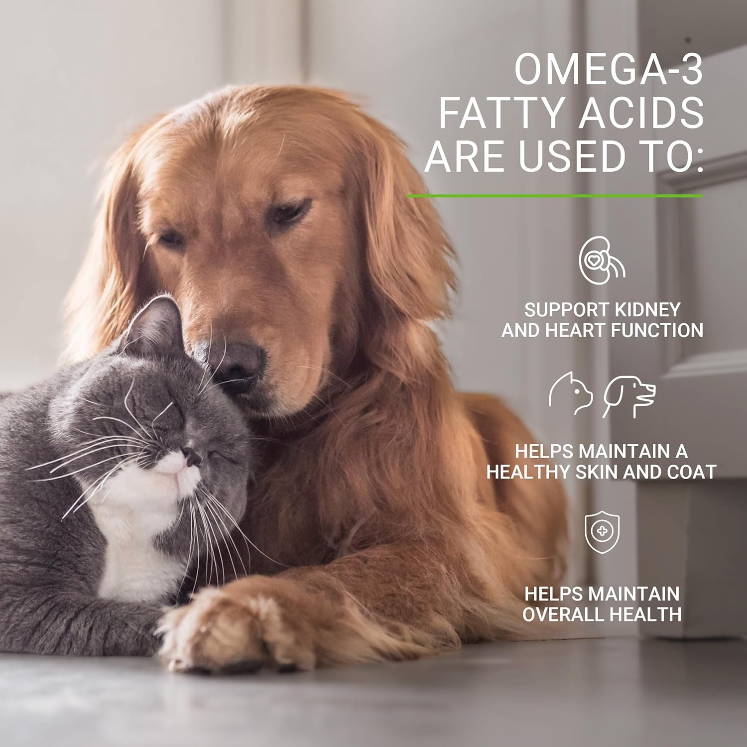 NUTRITIONAL SUPPLEMENT: Pets do not produce, by themselves, omega-3 essential fatty acids; therefore, they are sourced from their diet. Fish oil is a better source of omega-3 fatty acids for pets compared to plant derived omega-3.