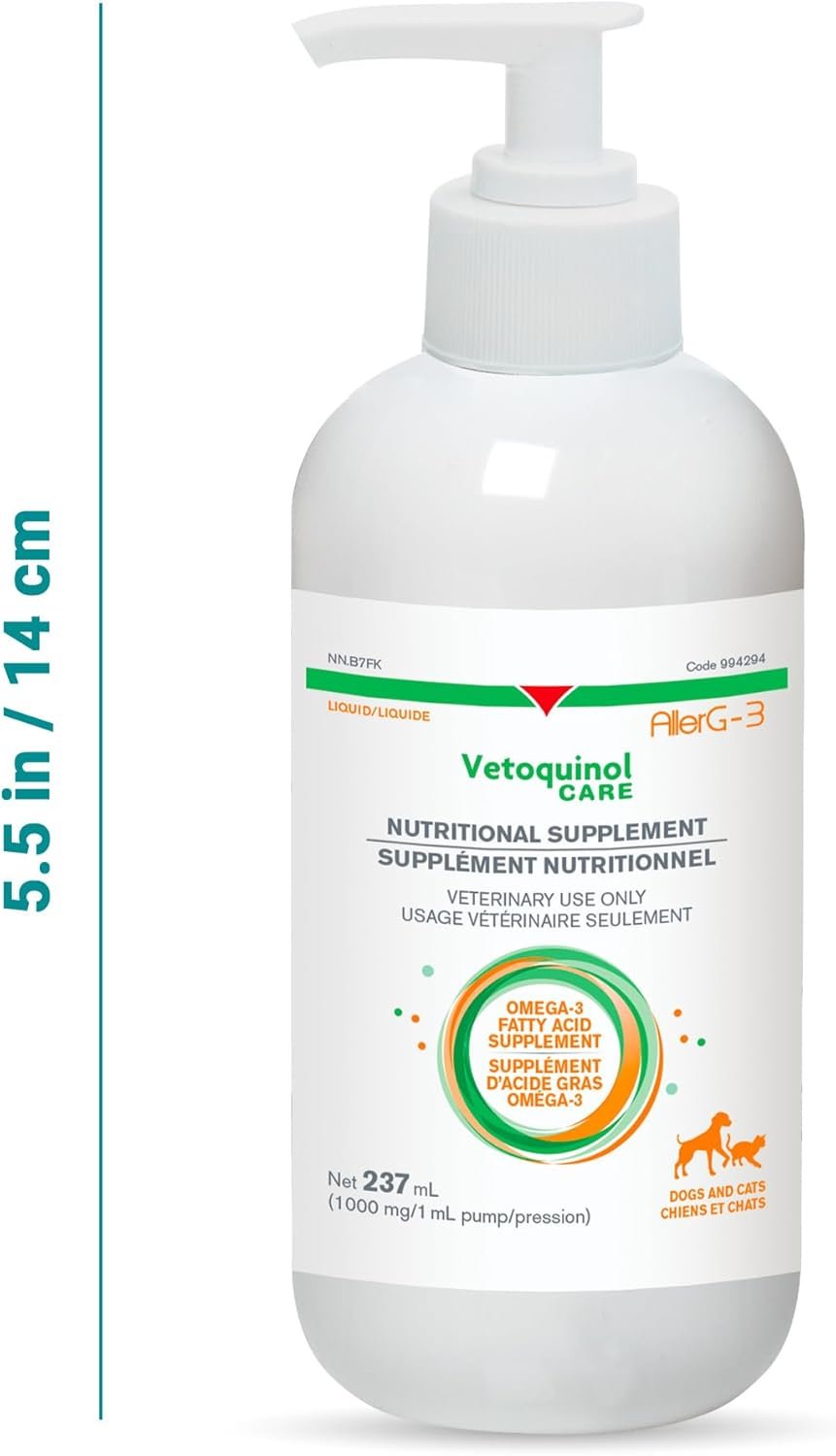 Vetoquinol Allerg-3 Liquid – Veterinary Health Product – Omega-3 Fatty Acid Nutritional Supplement – 237 ml