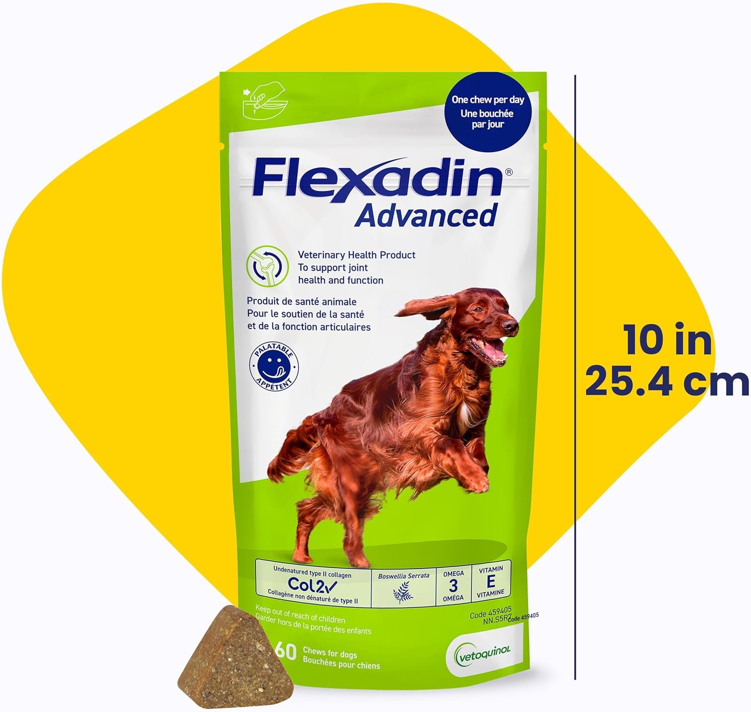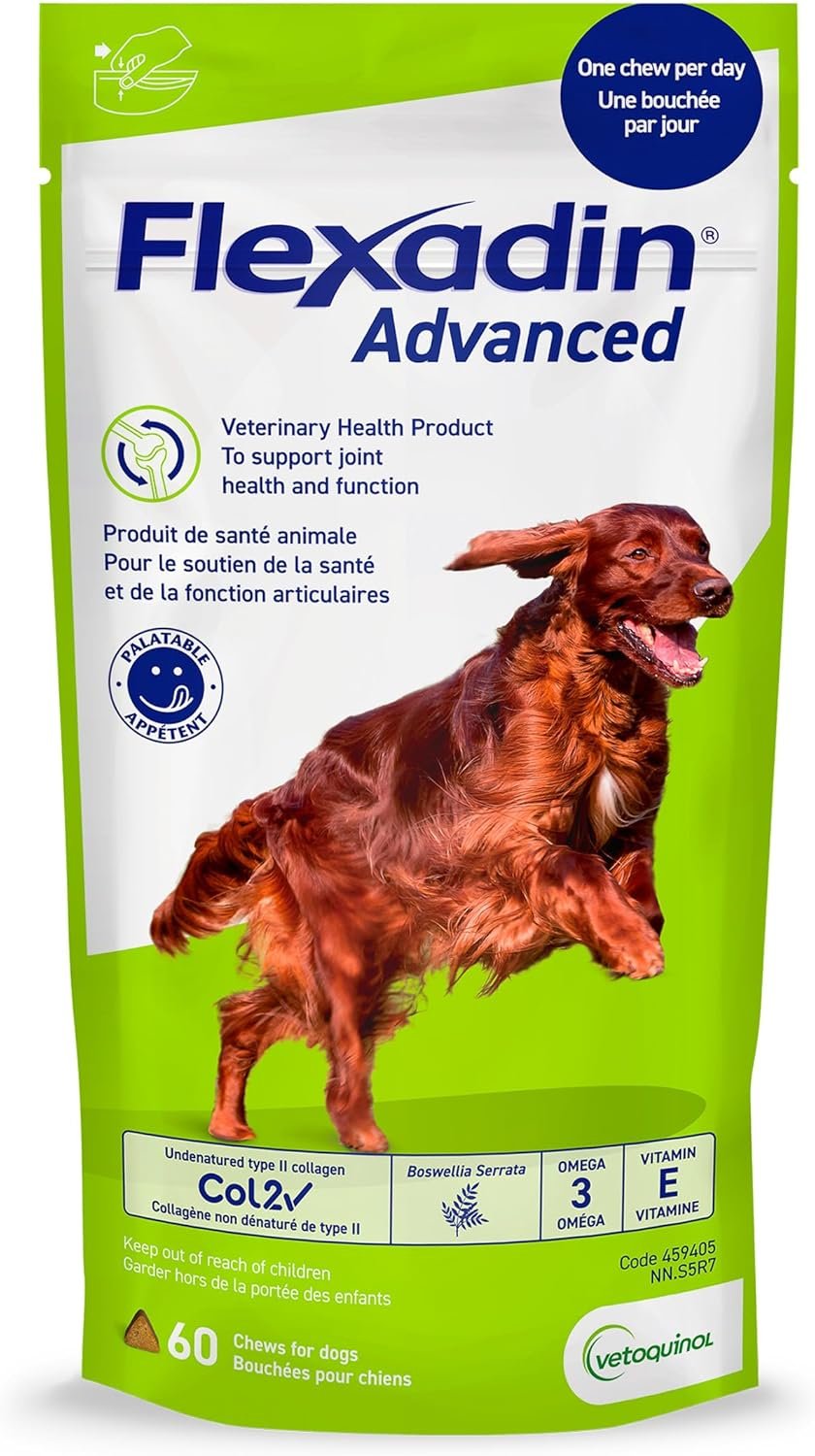 Vetoquinol Flexadin Advanced (with boswellia) – Dog Joint Supplement – One Chew a Day for Dogs – 60 Chews