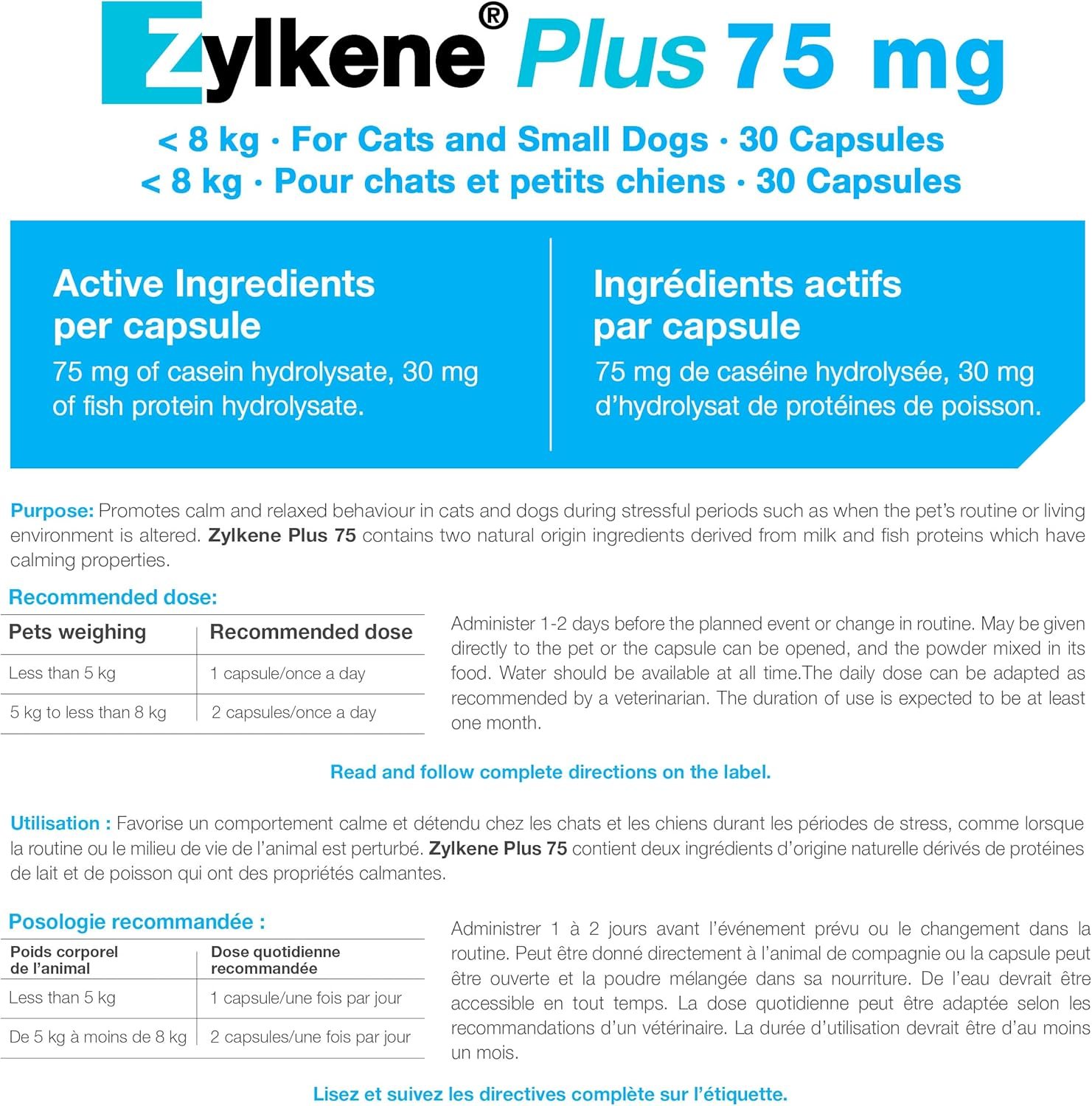 Vetoquinol Zylkene Plus – Veterinary Health Product – Promoting Calm and Relaxed Behaviour in Pets During Stressful Periods (75 mg)