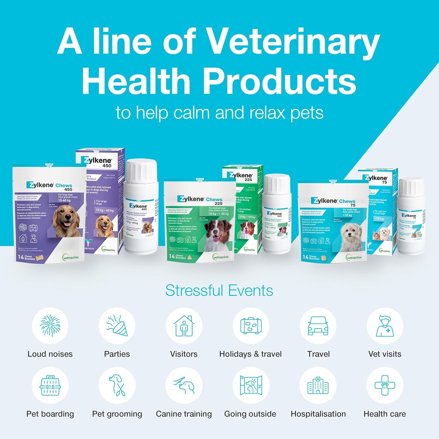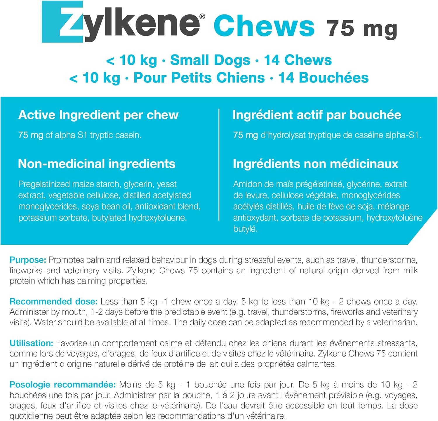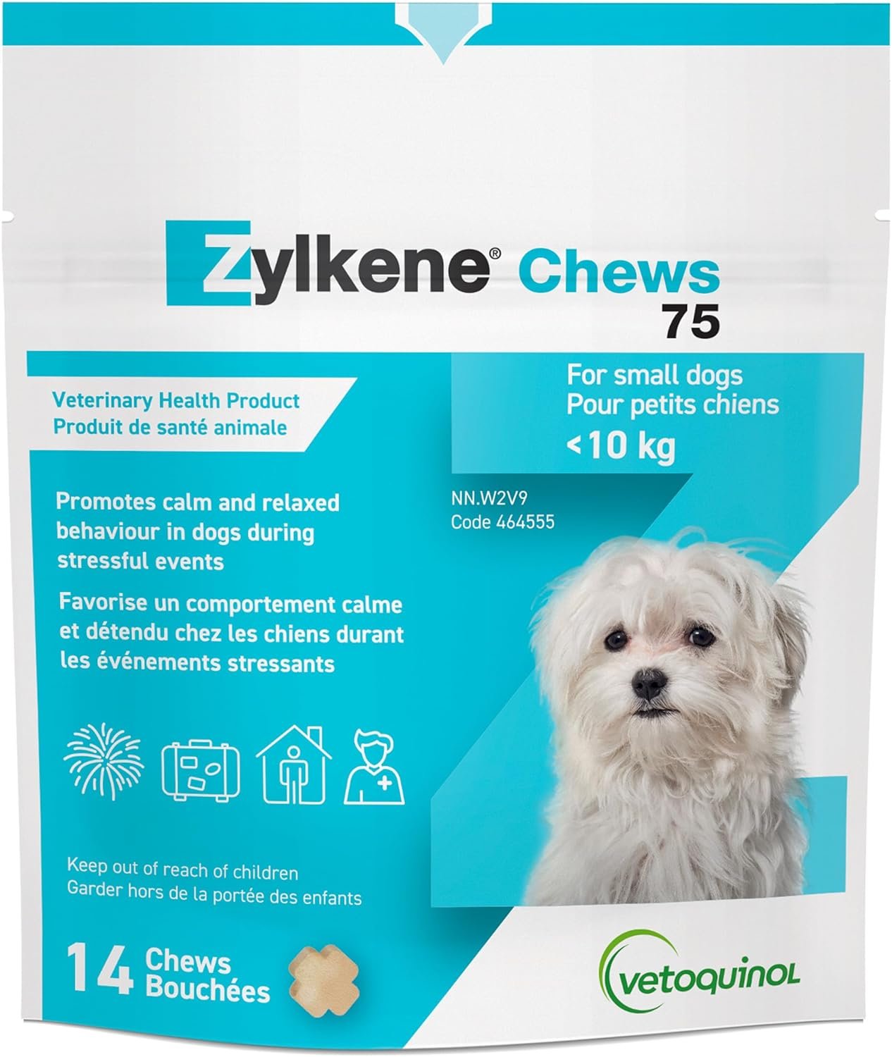Vetoquinol Zylkene – Veterinary Health Product – Calm and Relaxed Behaviour in pets during Stressful Events – 75 mg – Small Dogs – 14 Chews