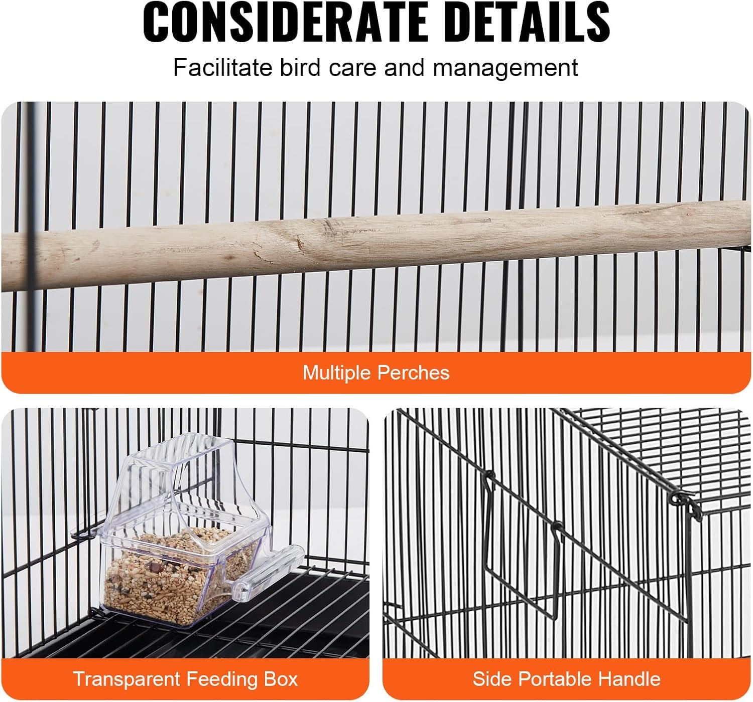 VEVOR 30 inch Bird Cage, Metal Large Parakeet Cages for Cockatiels Small Parrot Budgies Lovebirds Canaries, Pet Bird Cage with Rolling Stand and Tray