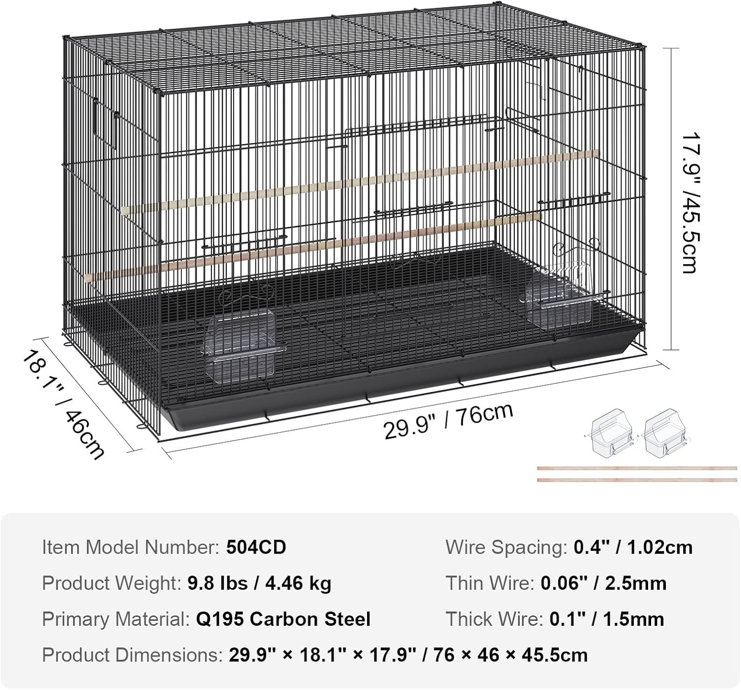 Ample Space: Measuring 29.9″L x 18.1″W x 17.9″H, with a 0.4” grid spacing, this bird flight cage offers a roomy, comfortable living space for your pet birds to move freely, rest, and stretch their wings. Allow them to enjoy free and comfortable movement within a limited area.