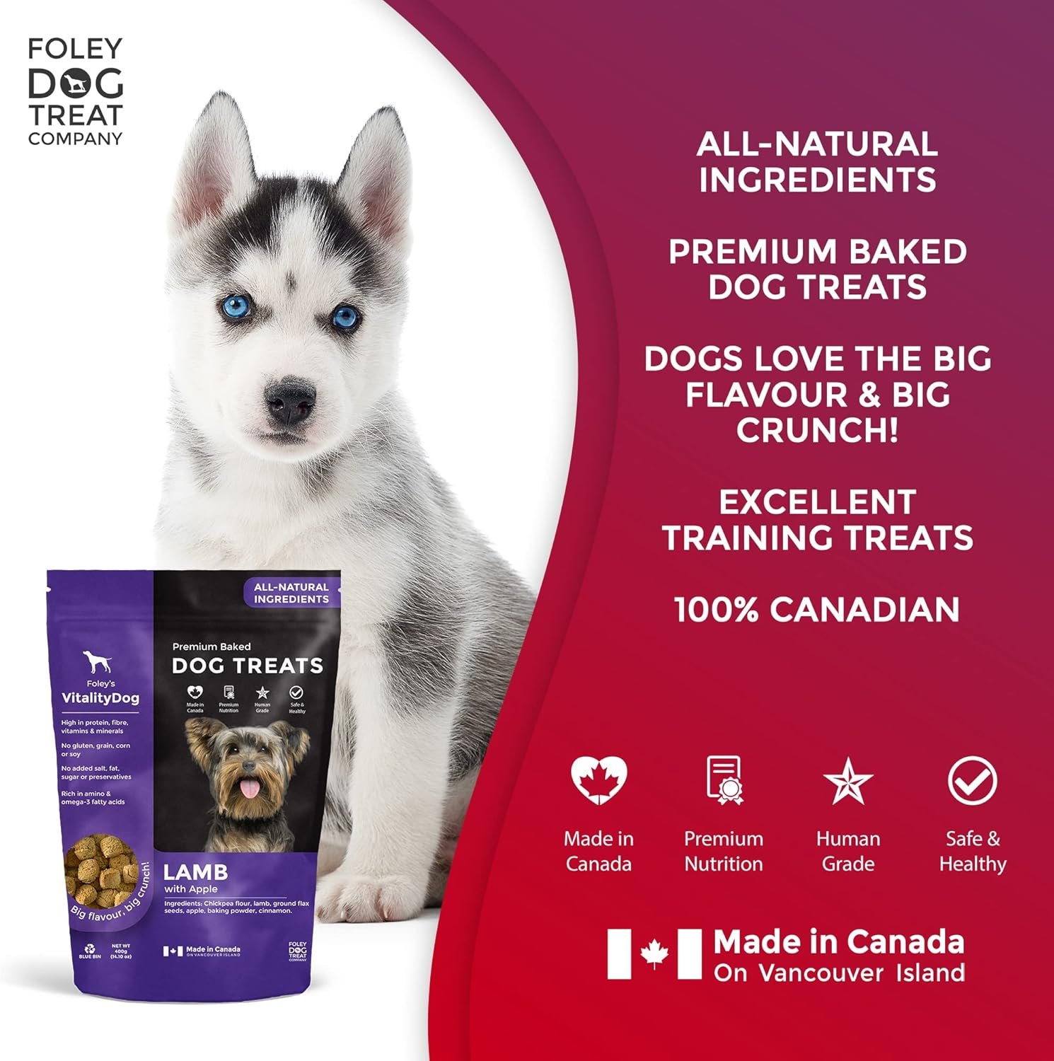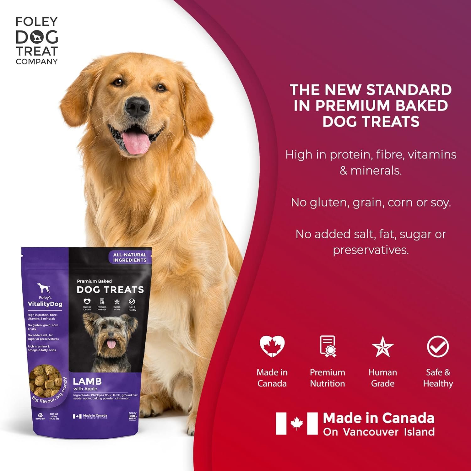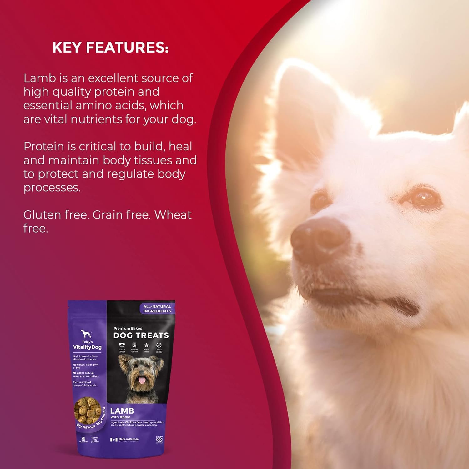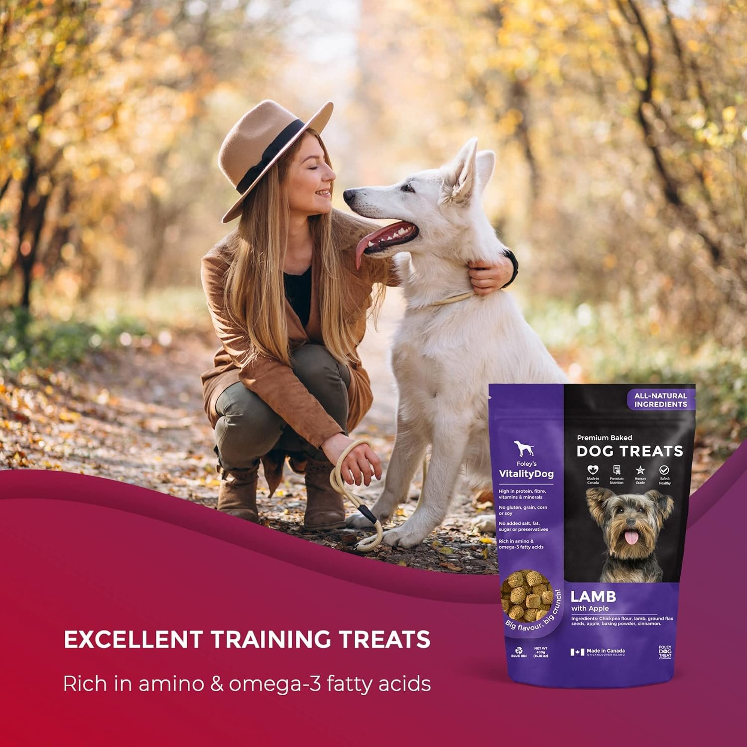 Vitality Dog Lamb with Apple – Premium Baked Dog Treats – Training Treats for Dogs, Pet Treats, Dog Snacks – Made in Canada, Grain Free, Human Grade, 400g / 14.1oz