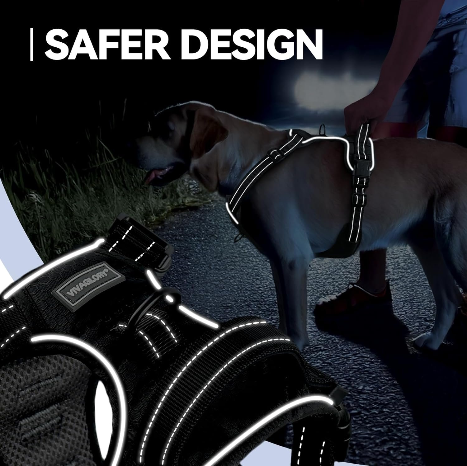 Built for Safety: A padded and reinforced traffic handle near the back makes it easy to grab and control your dog during training or emergencies, and helps lift them over obstacles with ease—adding safety and convenience to every outing. The 360° reflective webbing throughout the dog vest harness keeps your furry friend visible even in low light for safer nighttime walks. All buckles are made of new, non-recycled plastic—smooth, sturdy, and durable—for enhanced overall safety