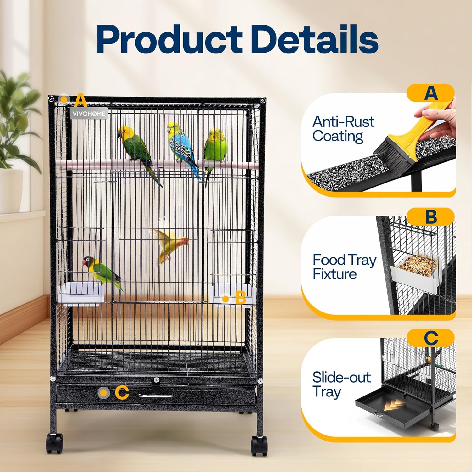 With Rolling Stand VIVOHOME 30-Inch Height Wrought Iron Bird Cage