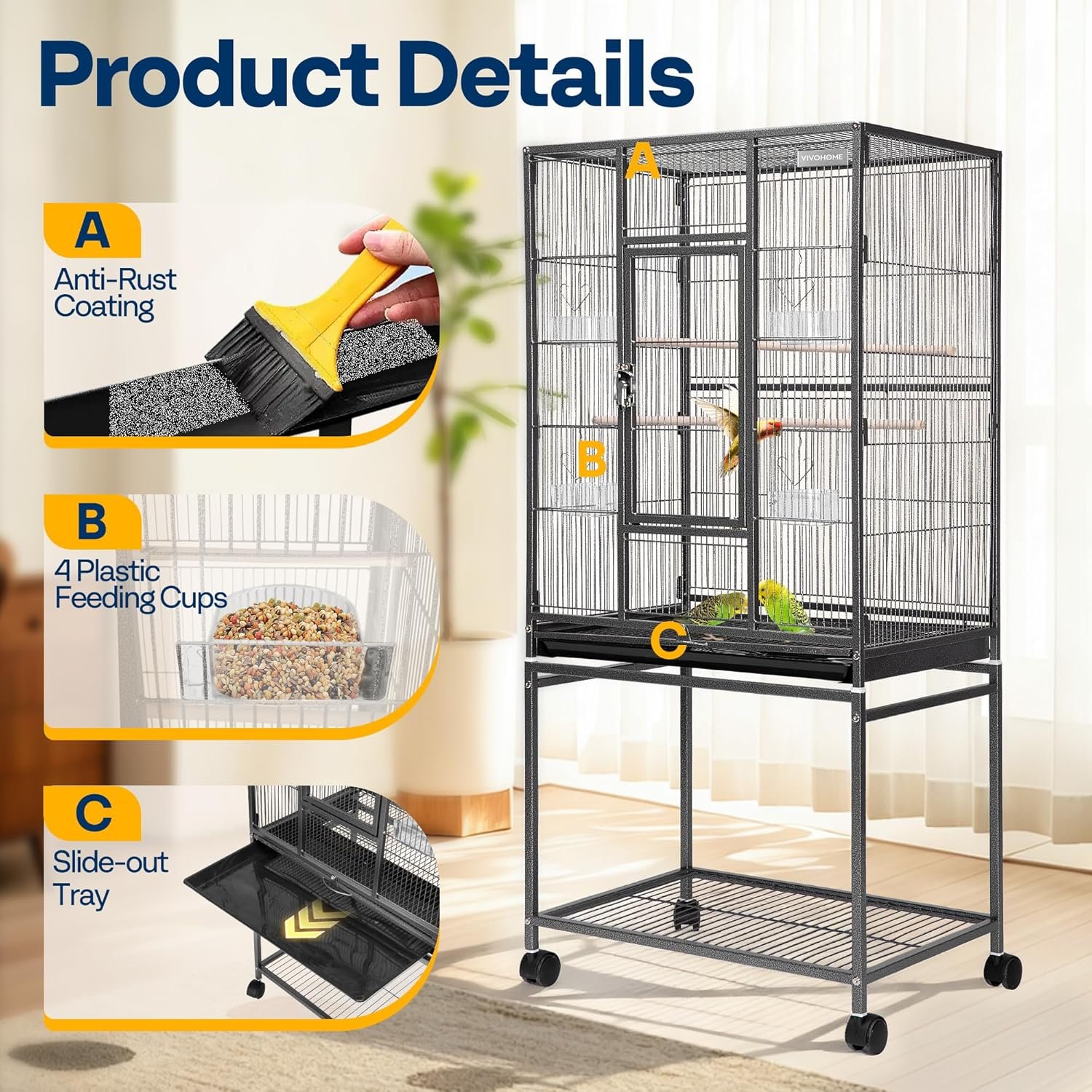 VIVOHOME 54 Inch Wrought Iron Large Bird Flight Cage with Rolling Stand for Parakeets Canaries Cockatiels Lovebirds Conures, Black