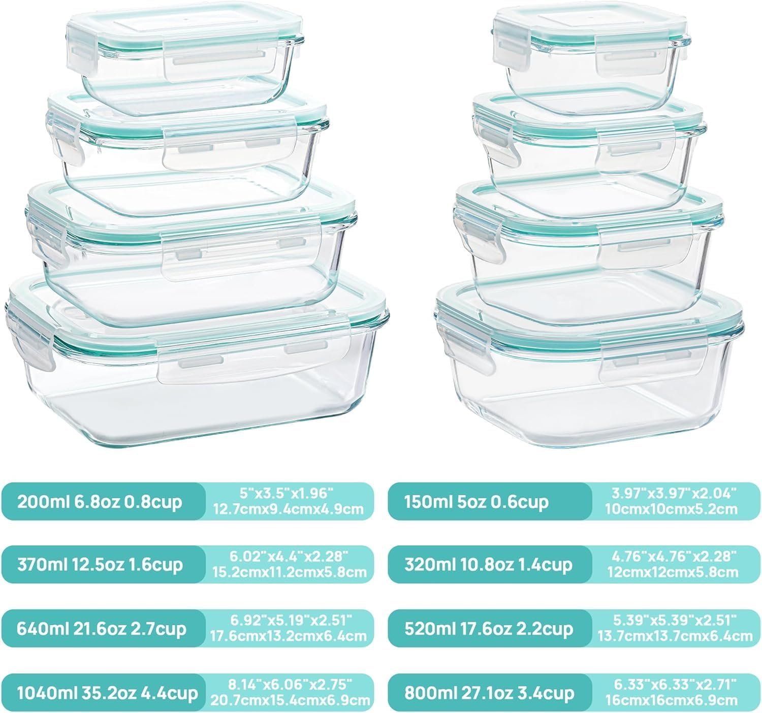 Vtopmart 8 Pack Glass Food Storage Containers with Lids