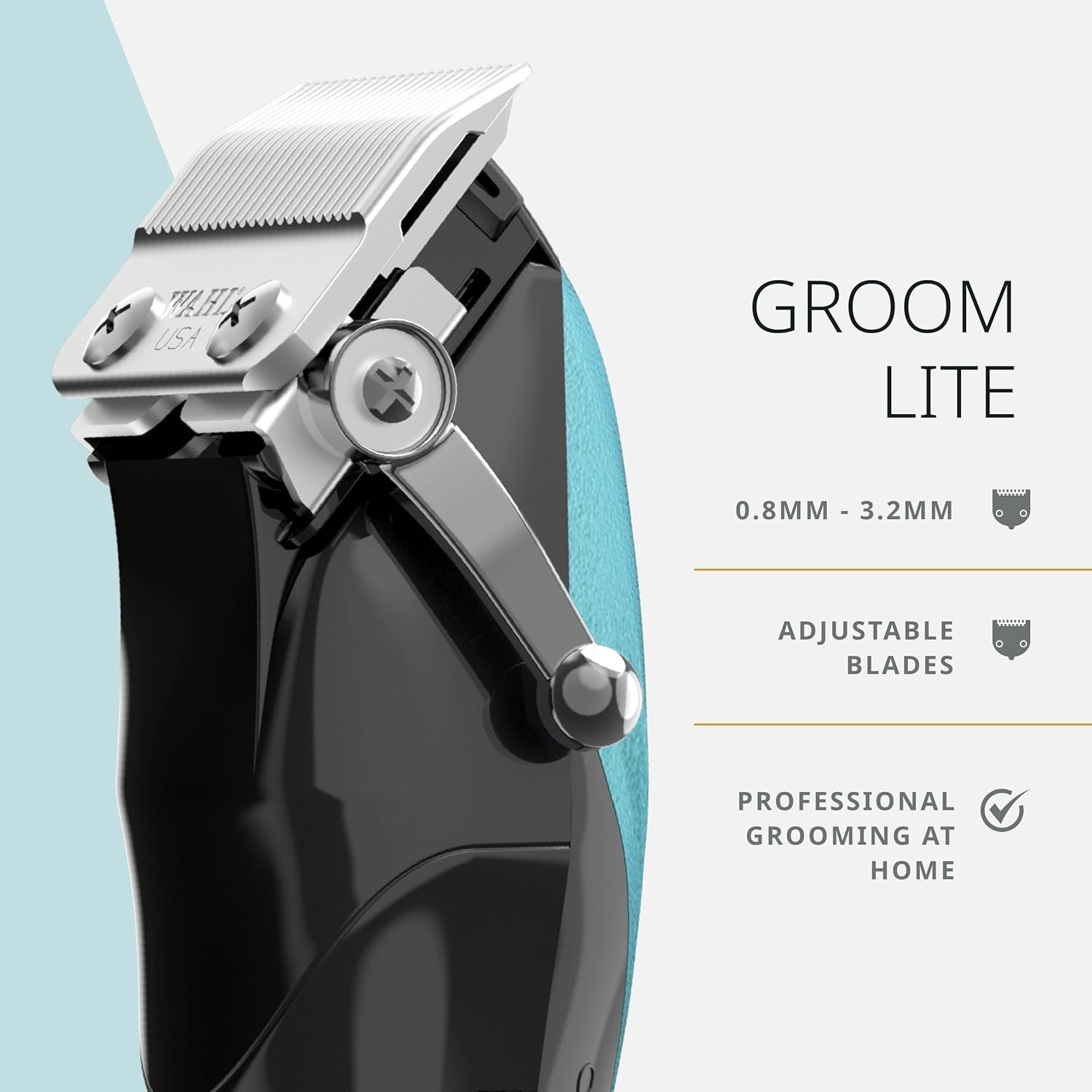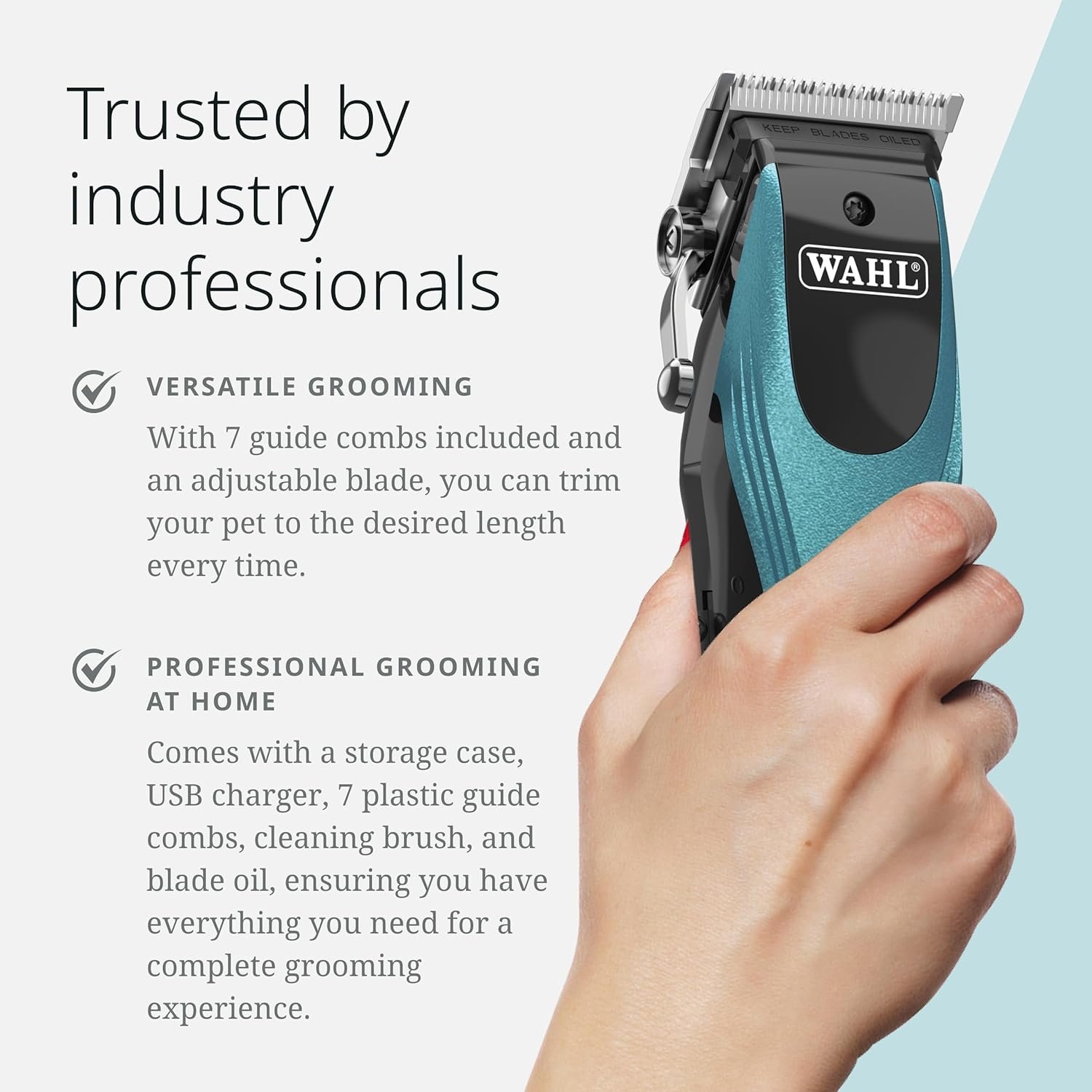 Wahl Pro Animal Groom Lite Pet Clipper – Cordless & USB Charging – Adjustable Blades – Professional Grooming Kit for Dogs, Cats & Small Pets – Black/Metallic Blue