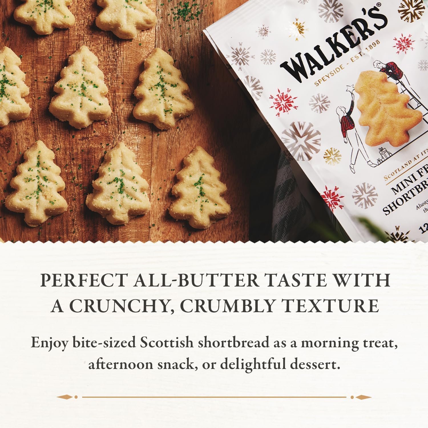 Walker’s Mini Shortbread Christmas Trees, Holiday All Butter Cookies – 125g Bag