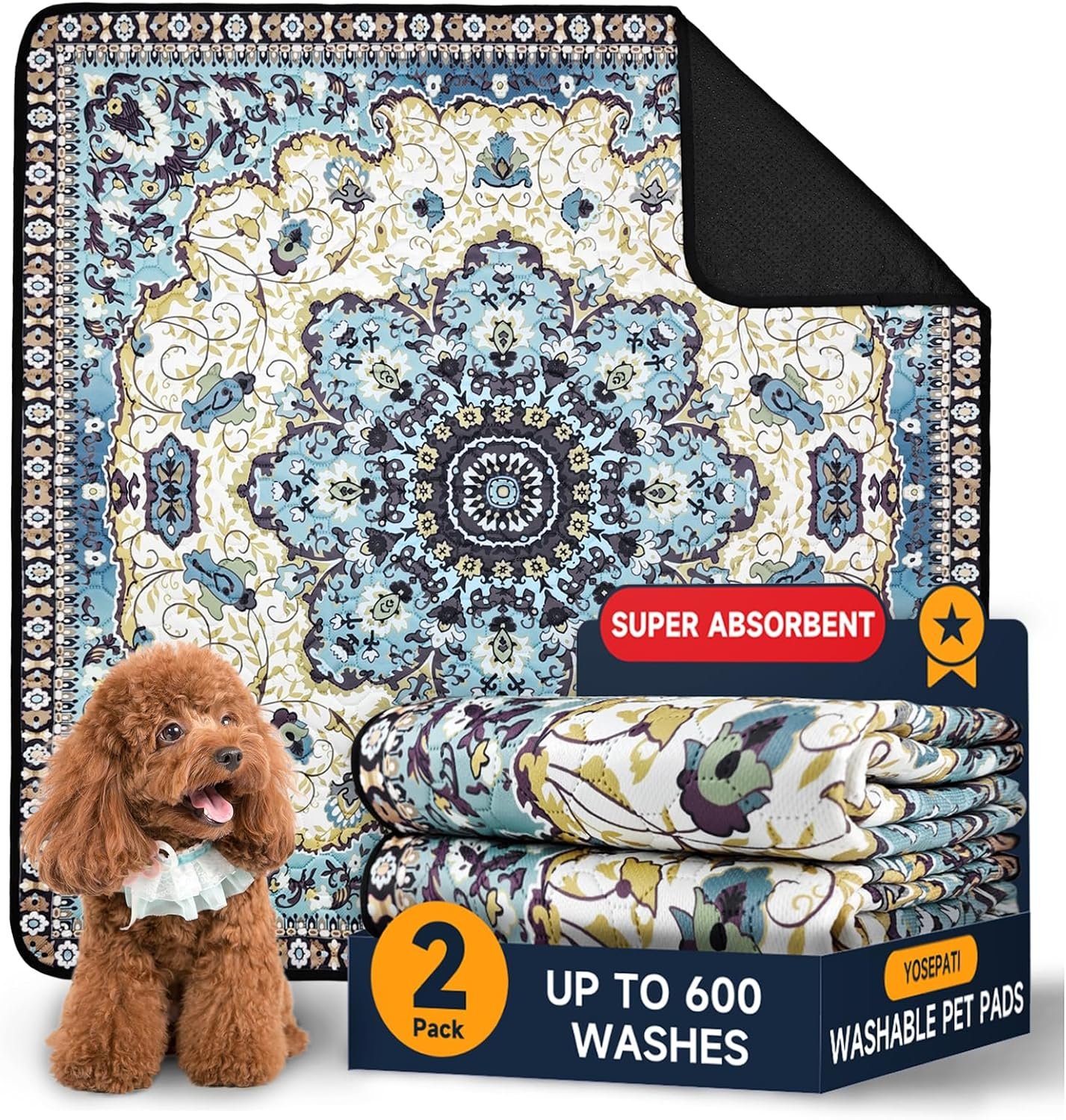 【STYLISH DOG HOUSEBREAKING SUPPLIES】Our pee pads come in Bohemian styles, in addition to being puppy supplies to train and prevent leakage, you can even decorate your home with this puppy pad,they also add a touch of style to your home. Our pads seamlessly blend with your interior decor while offering a comfortable and safe surface for your furry friend to play, rest, or sleep on.