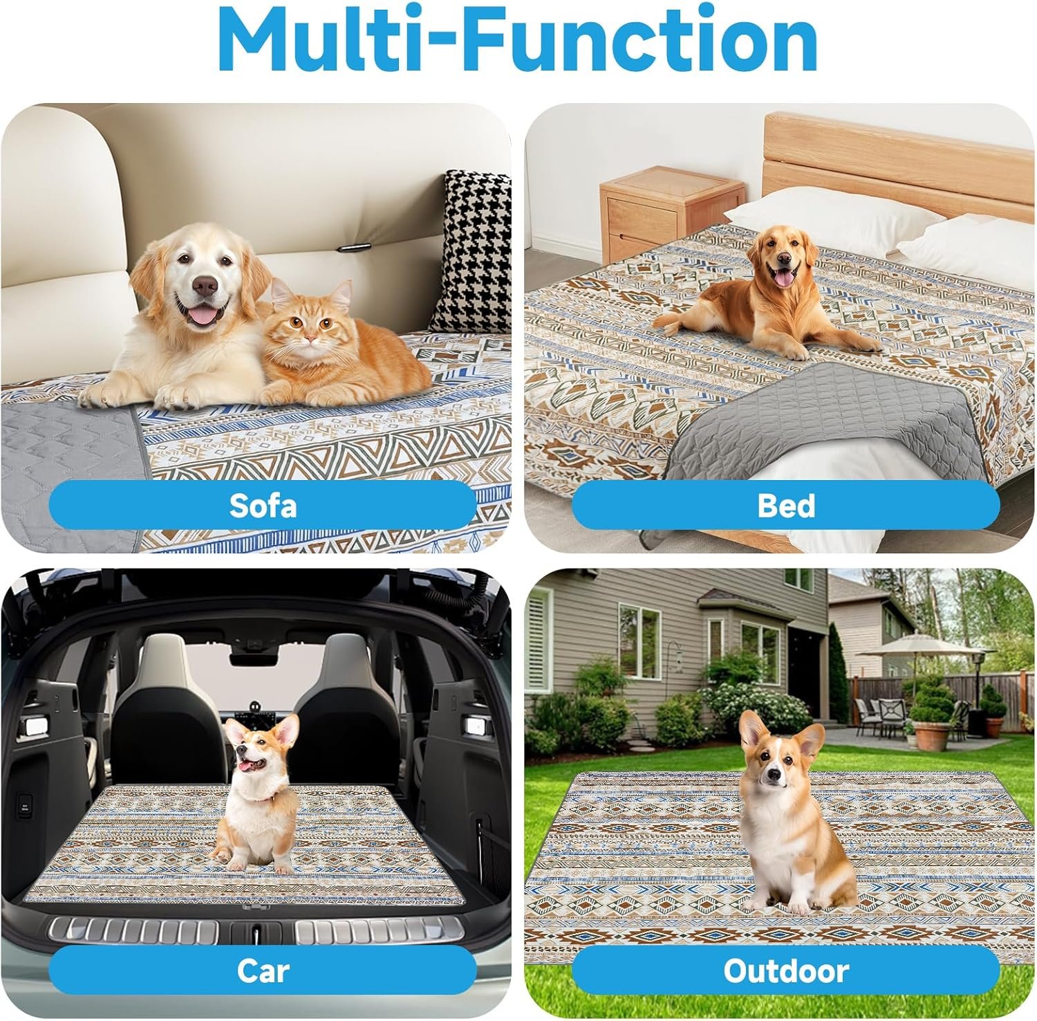 【Widely Used】This Dog blanket for couch is perfect for a variety of scenarios, such as sofa, bed, car, and floor. It’s also great for travel and picnics—keep your pets dry and comfortable whether indoors or outdoors