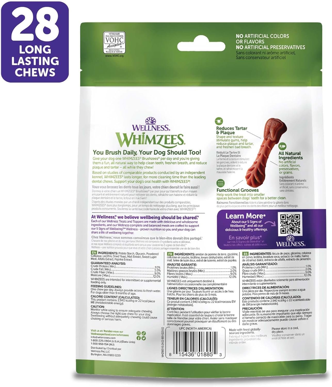 Whimzees Natural Grain Free Long Lasting Dental Dog Treats, Daily Use Packs, Extra Small Brushzees Bag of 28, Vegetable, 7.41oz