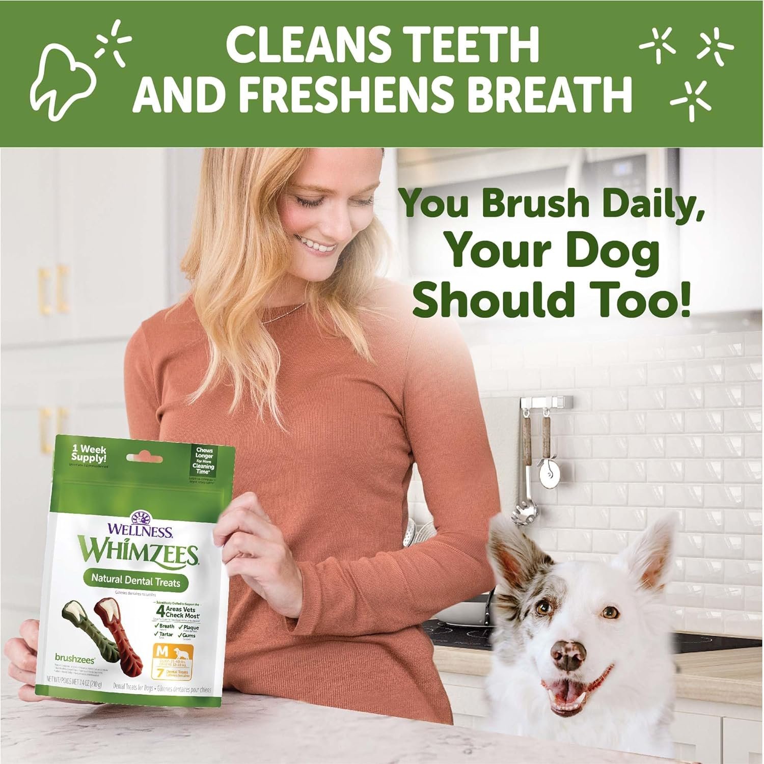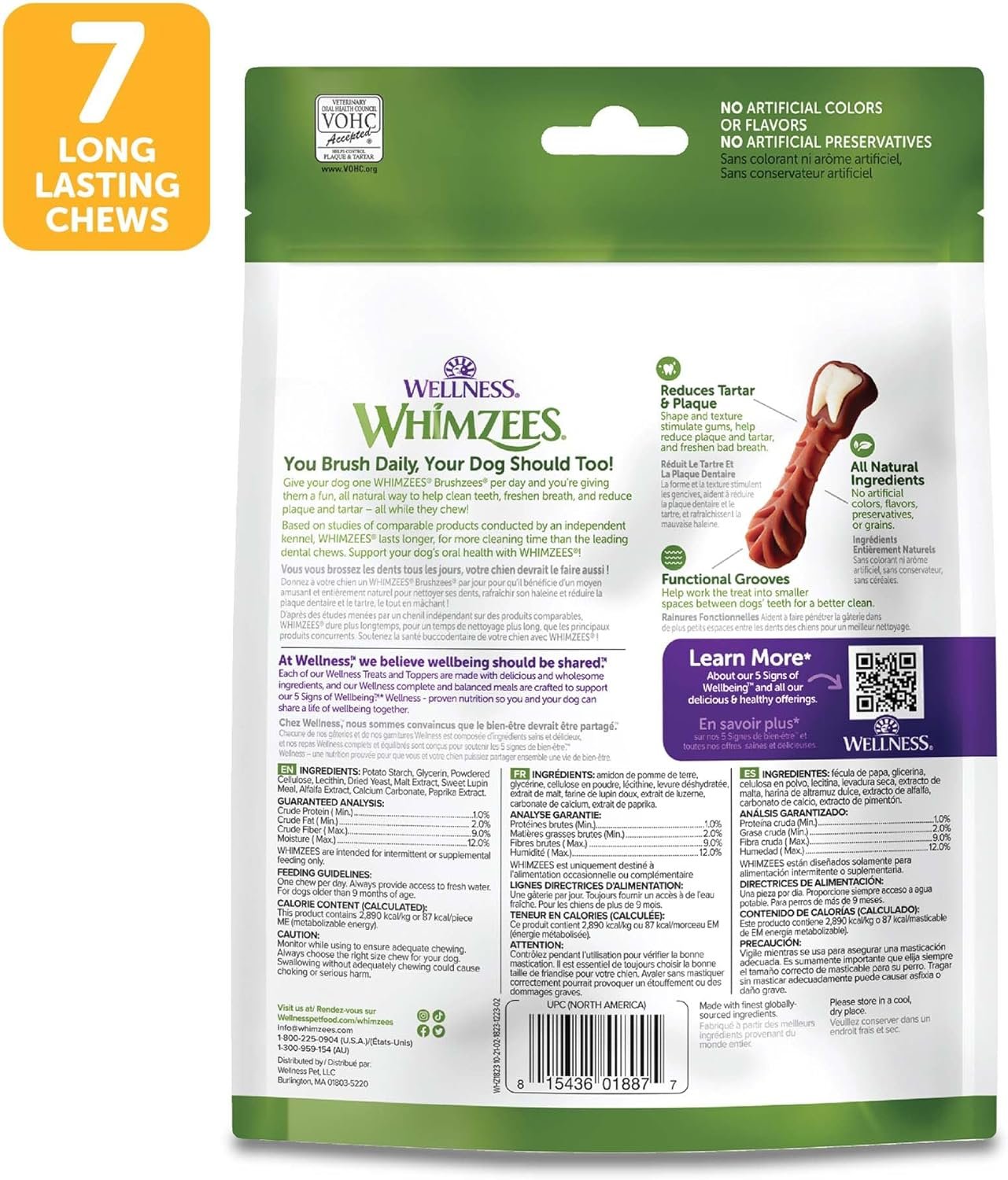 Whimzees Natural Grain Free Long Lasting Dental Dog Treats, Daily Use Packs, Medium Brushzees Bag of 7