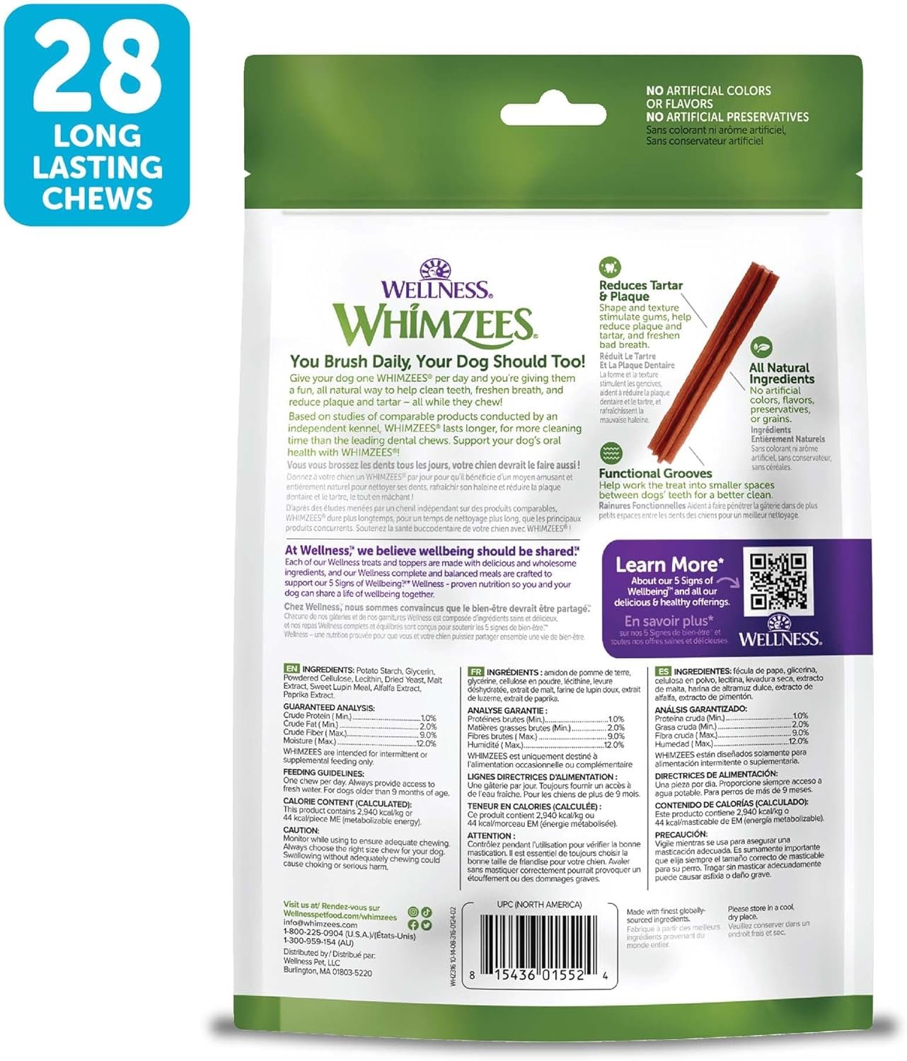 WHIMZEES WHZ316 Natural Grain Free Dental Dog Treats, Stix, Bag of 28 Small