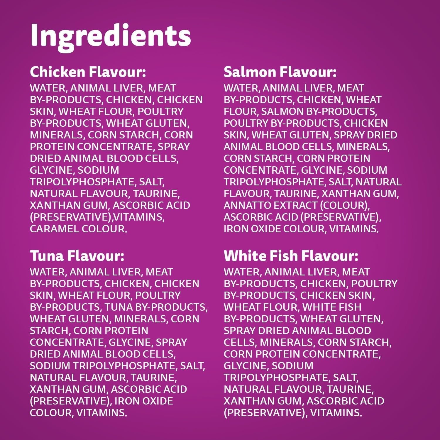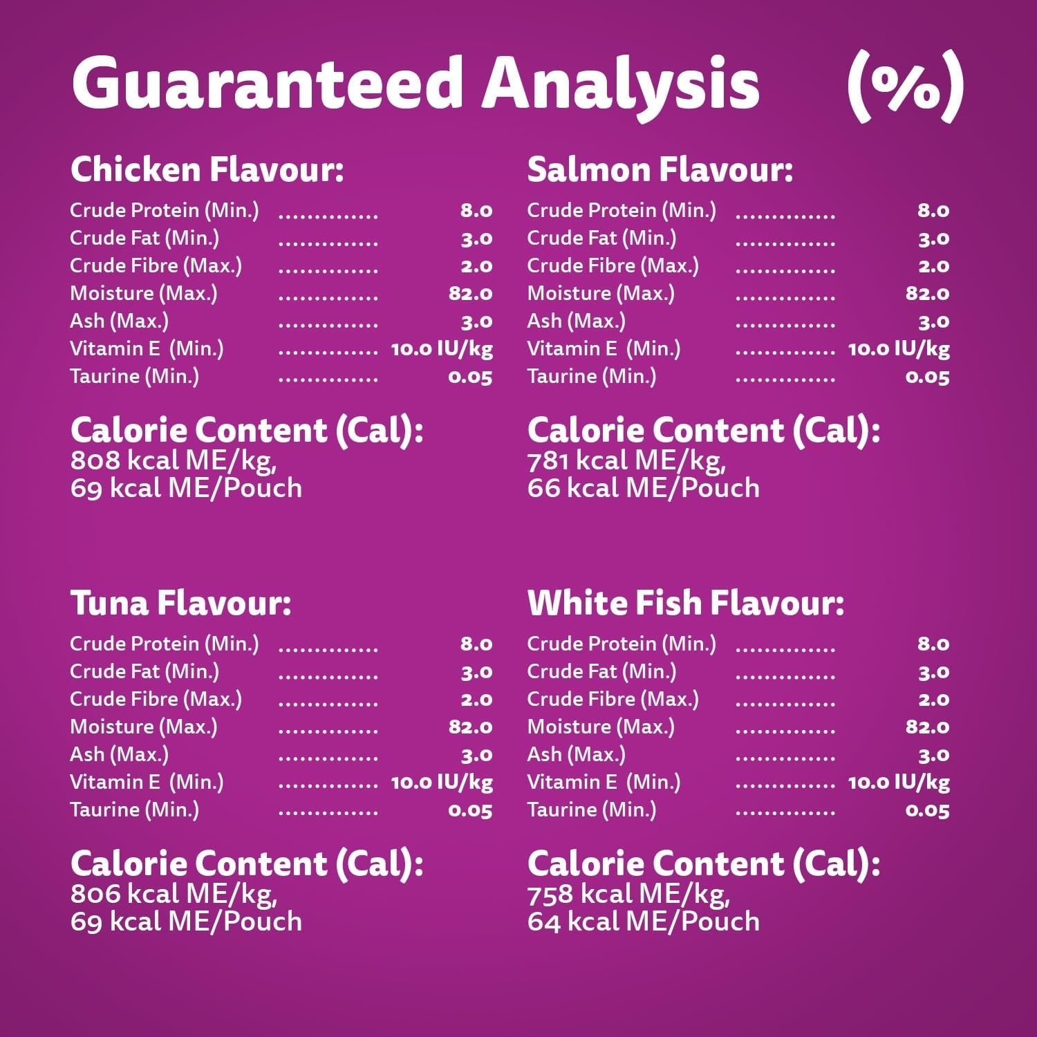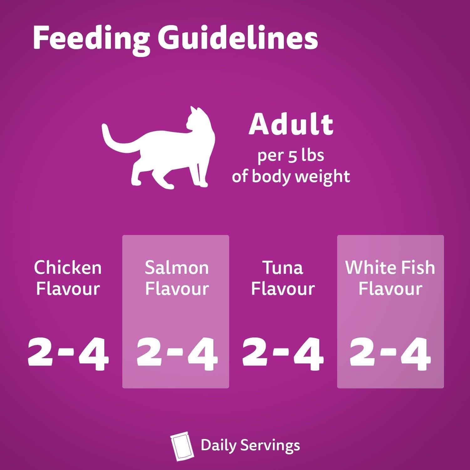 WHISKAS knows that every cat needs care and affection. So, each FAVOURITES pouch is carefully prepared with high quality ingredients, providing the nutrients your adult cat needs every day. These 100% complete and balanced recipes with Chicken, Salmon, Tuna or White Fish in delicious gravy will see your cat running to their bowl at every mealtime. With vitamin E to support a healthy immune system and no preservatives, you can be sure you’re giving your cat what they need. Formulated to meet the nutritional levels established by the AAFCO Cat Food Nutrient Profiles for adult maintenance. Mix this wet recipe with WHISKAS dry food – either as a topper or in alternating meals – to provide mealtime variety and excitement. WHISKAS committed to happy, healthy cats of all ages. Our range of recipes for kittens, adult cats and senior cats includes wet and dry foods, treats and milk – all designed to inspire contented purrs at every age.