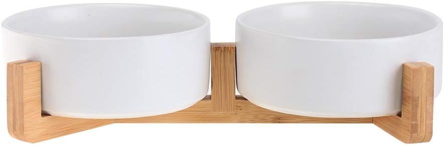 【Safe & Healthy Material】: Made of 100% porcelain ceramic and natural wood material, free of lead and cadmium. High temperature ceramic,non-toxic harmless,no smell,durable.Clean sanitation, be helpful for pet health.