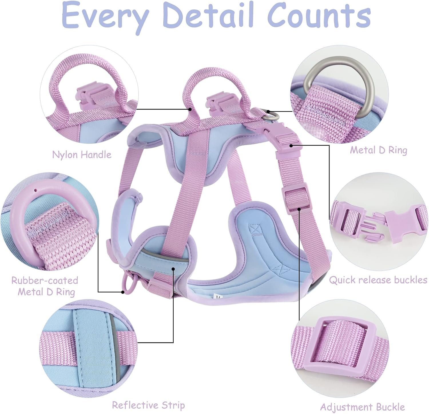 Wolfone No Pull Dog Harness Adjustable Soft Padded Pet Vest with Control Handle Adorable Daily Harness for Dogs(Spun Sugar S)