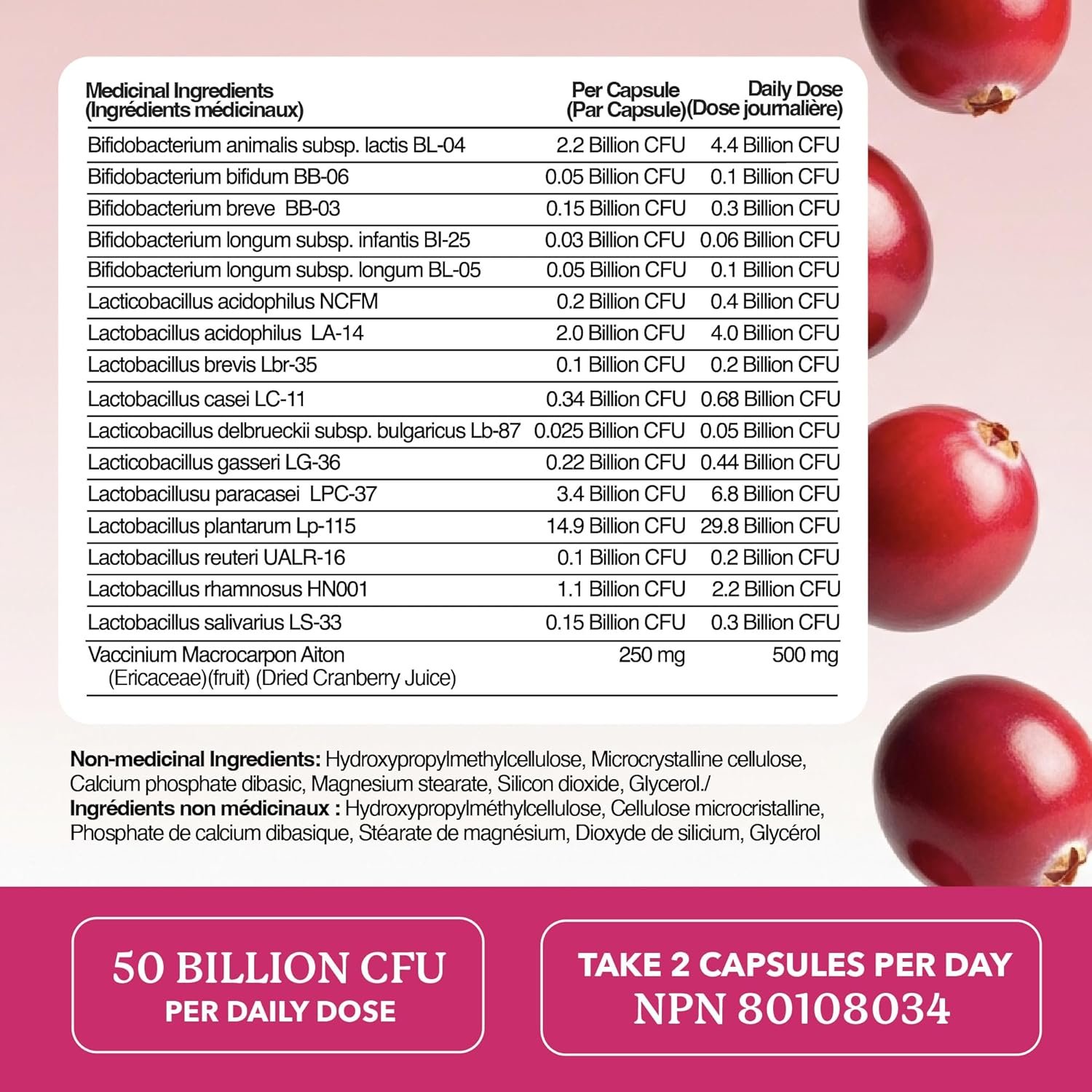 Womens Probiotic with Cranberry | 50 Billion CFU for Gut Health, Bloating Relief & Digestive Support | With Cranberry for Vaginal Health | Gut Health Supplements for Women | Made in Canada | 60 Ct.