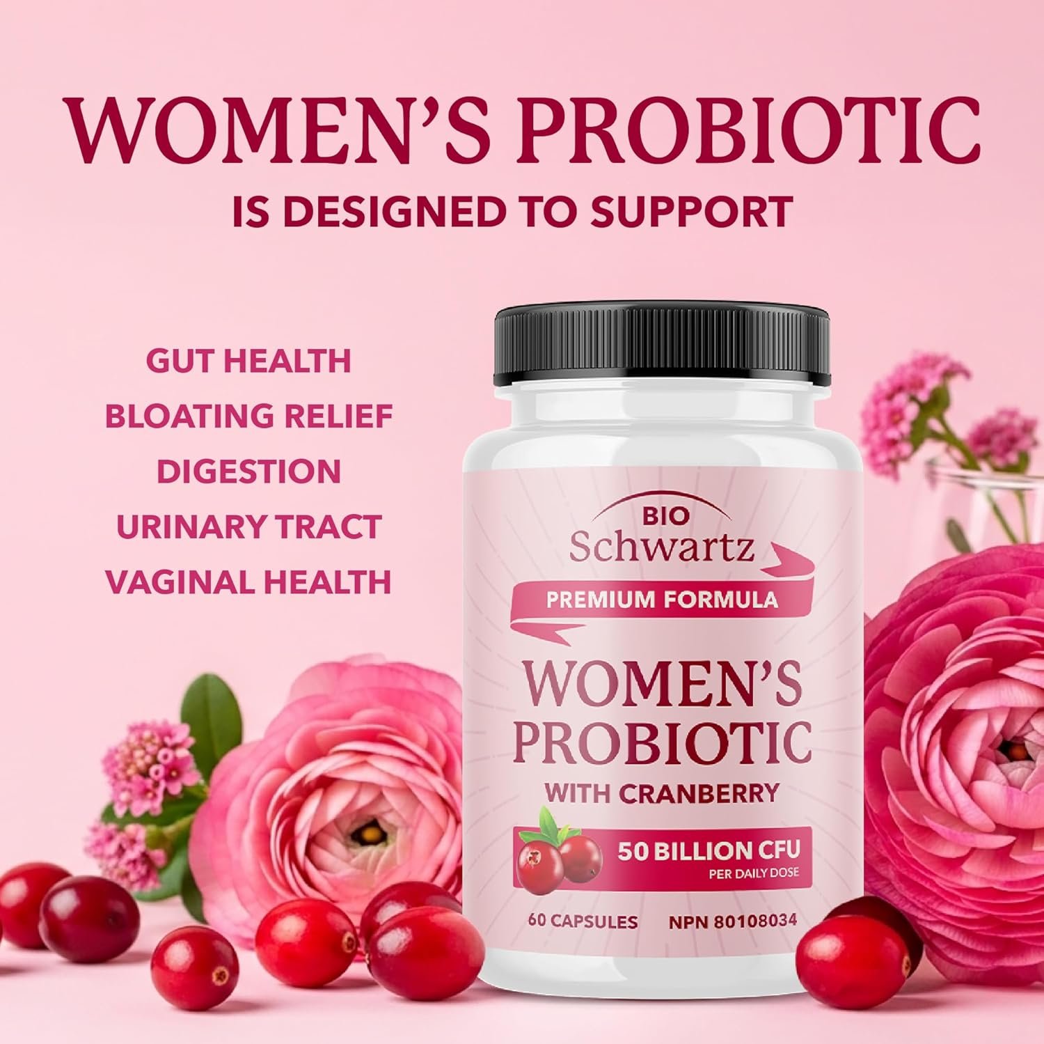 PROBIOTICS FOR WOMEN: At Bioschwartz, we understand that women’s probiotic needs are unique. Formulated with 16 of the most effective probiotic strains for female balance, plus cranberry for added support, these are the probiotics women trust for full-body wellness.