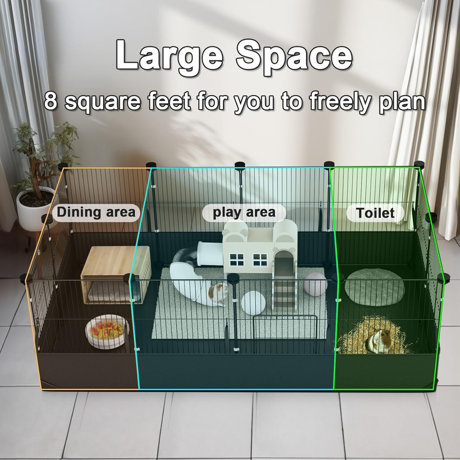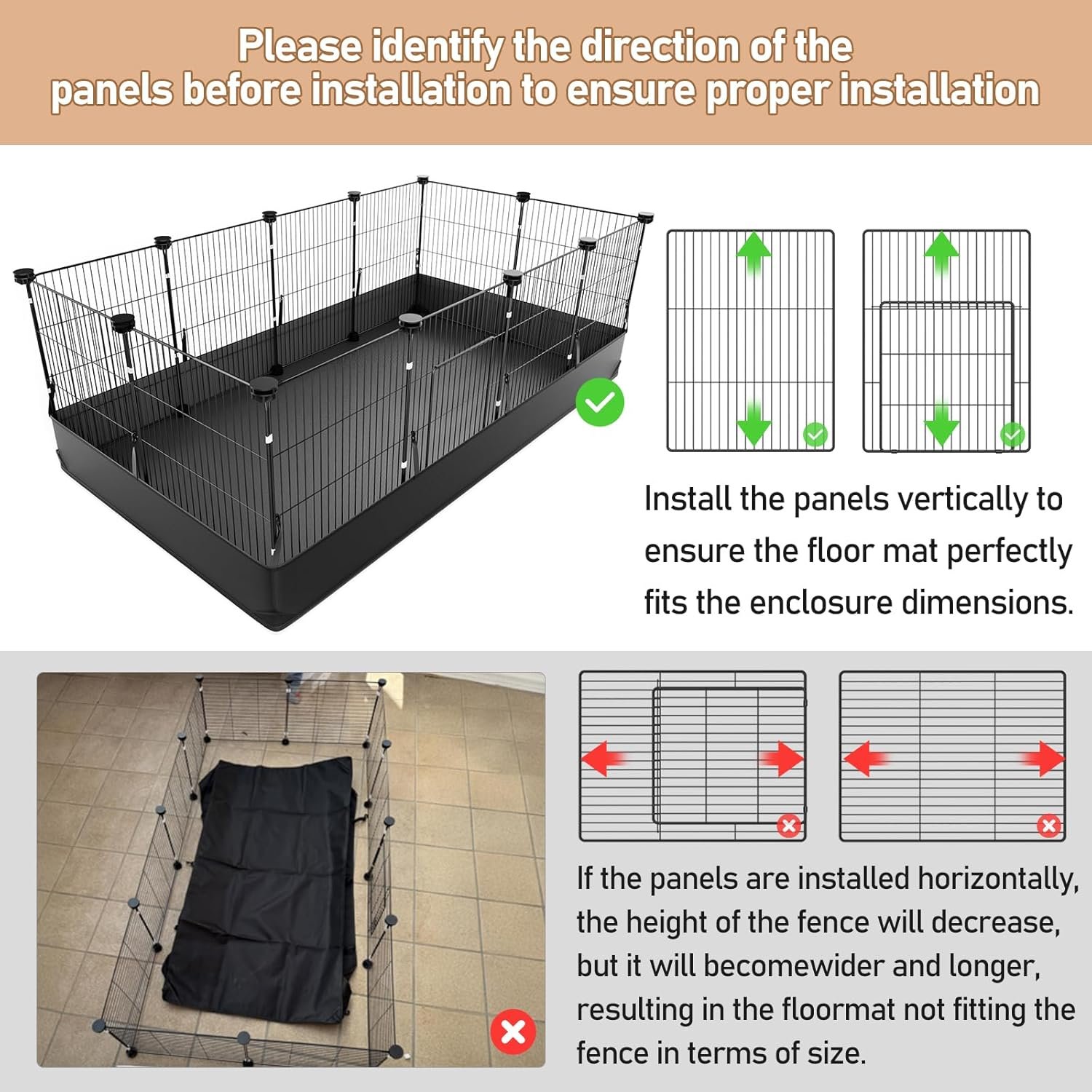 DIY for Your Small Pets: The 8 square feet is an spacious room for the majority of small animals. As owners, you can use your imagination to fully arrange the different uses of each place in the cage. This full-body patented product can also be used as bunny pen, rabbit play pen, hedgehog cages, ferret play pen. If you have larger mats or your don’t need a mat, the fence shape can be changed more. Feel free to contact us if you have any questions, we will provide you with satisfactory service.