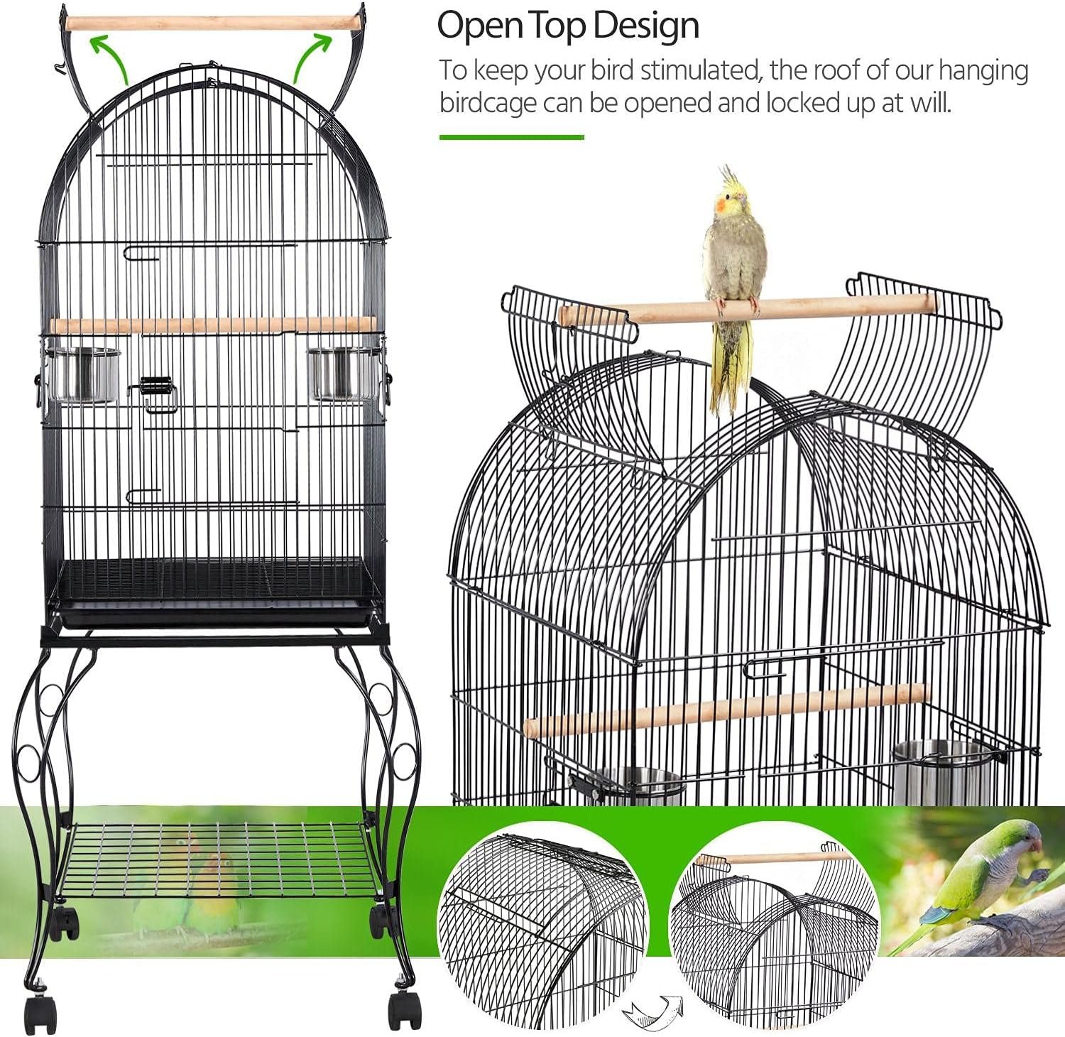 Interactive open top: Our 59-inch birdcage features an easy-to-use play top to keep your bird entertained and provide both you and your feathery friends with a better interaction way. It includes a perch that keeps the top doors open for the birds to stand on and can be closed to give them a safe enclosed home.