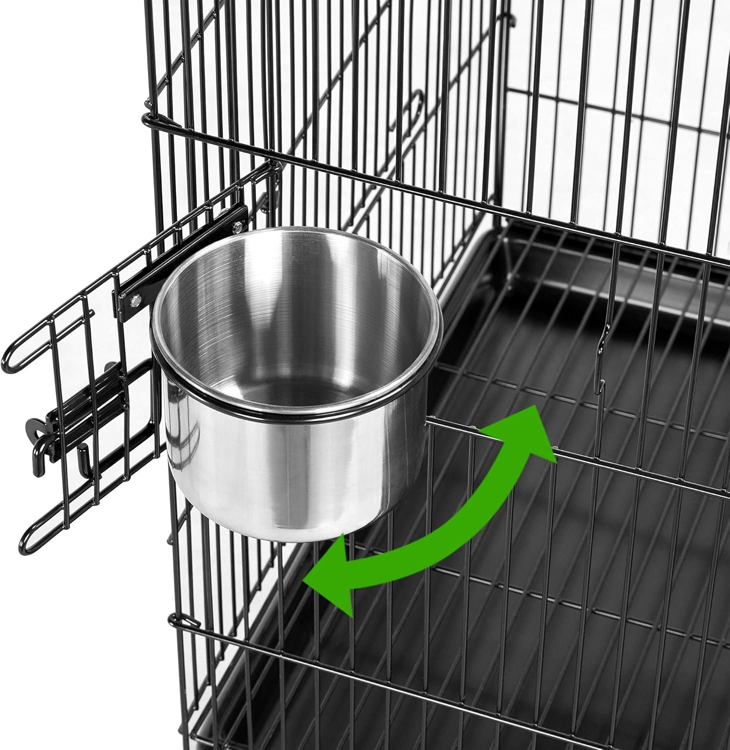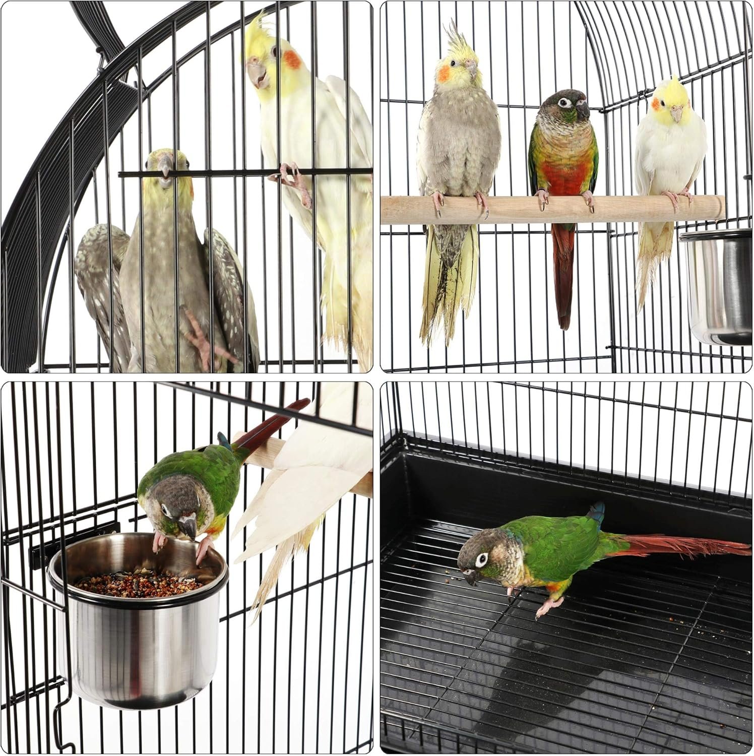 Easy-cleaning: The slide-out tray and detachable mesh grate under the cage can be removed for easy cleaning. The mesh grate prevent birds from walking directly on their droppings.