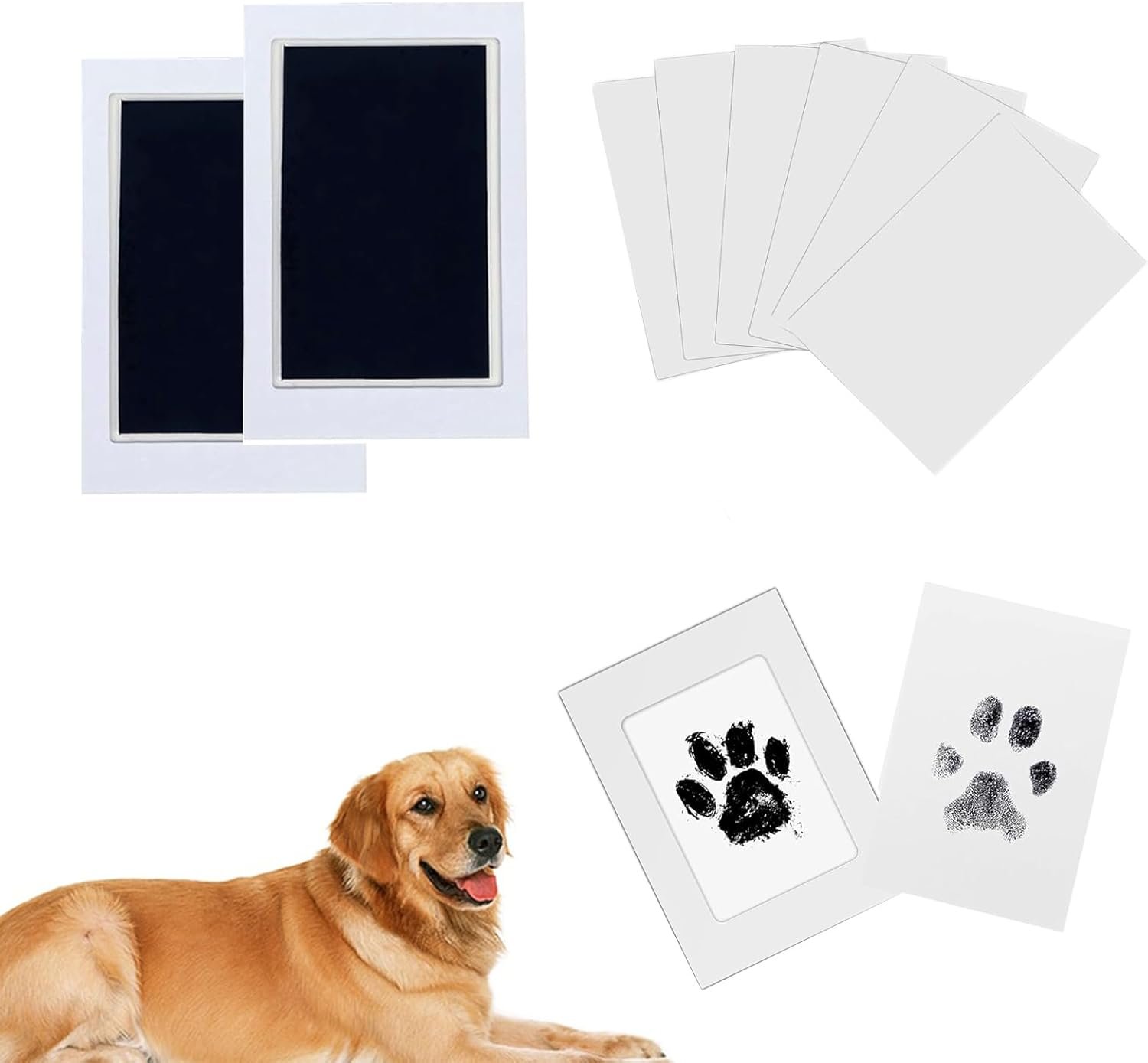 Package Includes and Size: 2Set pet paw print impression kit (2 ink pads+6 cardboard sheets). This paw print kit measure at 4.9 “x 3.1″/12.5 cm x 8 cm with an ink window of 3.7” x 2.4″/9.5cm x 6cm, perfectly sized for most dogs, cats and other family pets. Two different sizes of pet paw print sets give you more options to fit the size of your pet paw prints.