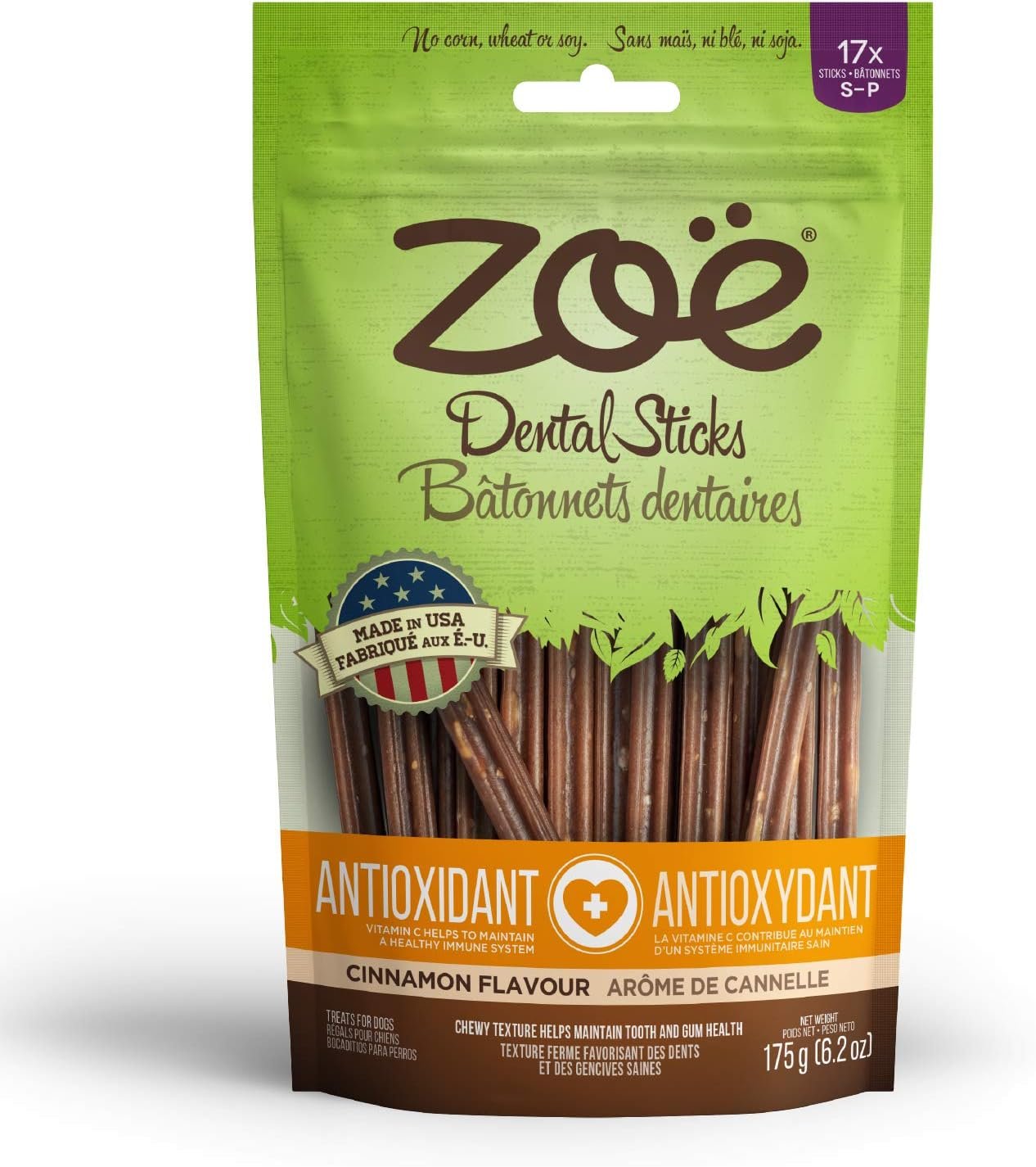 Zoe Dental Sticks for Dogs, Antioxidant, Small, Cinnamon Flavor, 6.2 oz, Brown