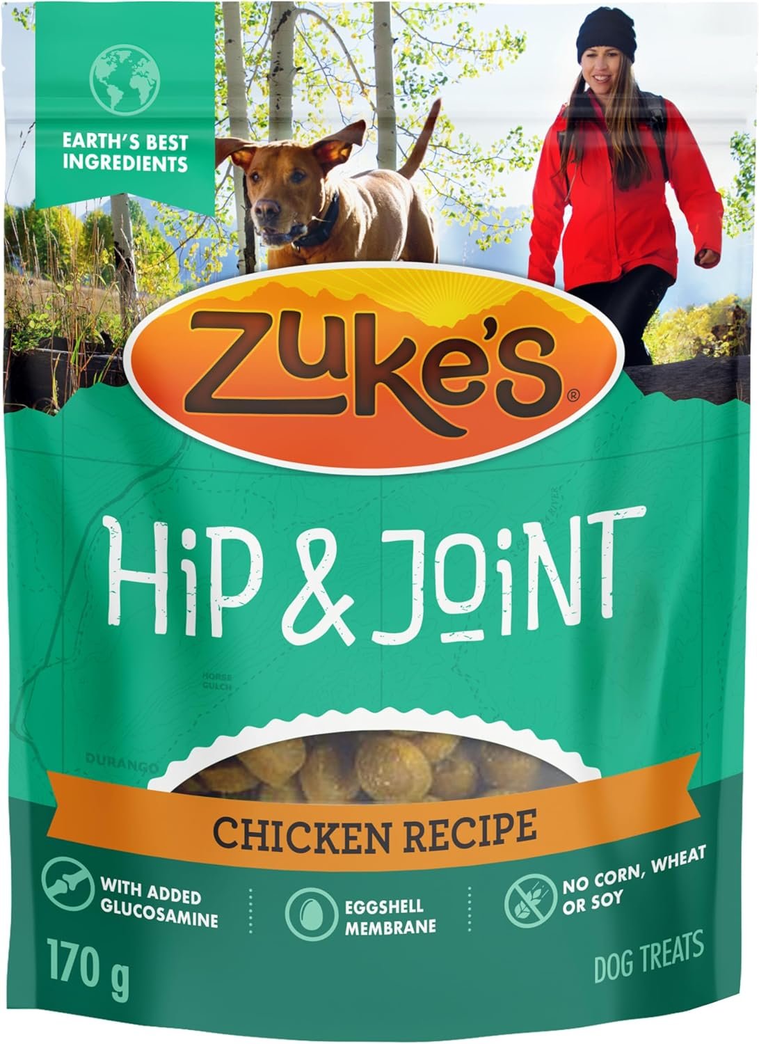 Whether it’s a morning walk or a weekend hike, your dog’s favourite times are those spent exploring with you. Designed to fuel those adventures and keep the good times going strong, every tasty Zuke’s Hip & Joint treat contains glucosamine to support your dog’s joint health and mobility. Crafted using the Earth’s best ingredients like chicken and antioxidant-rich berries, plus vitamins and minerals, Hip & Joint dog treats contain NO corn, wheat or soy.
