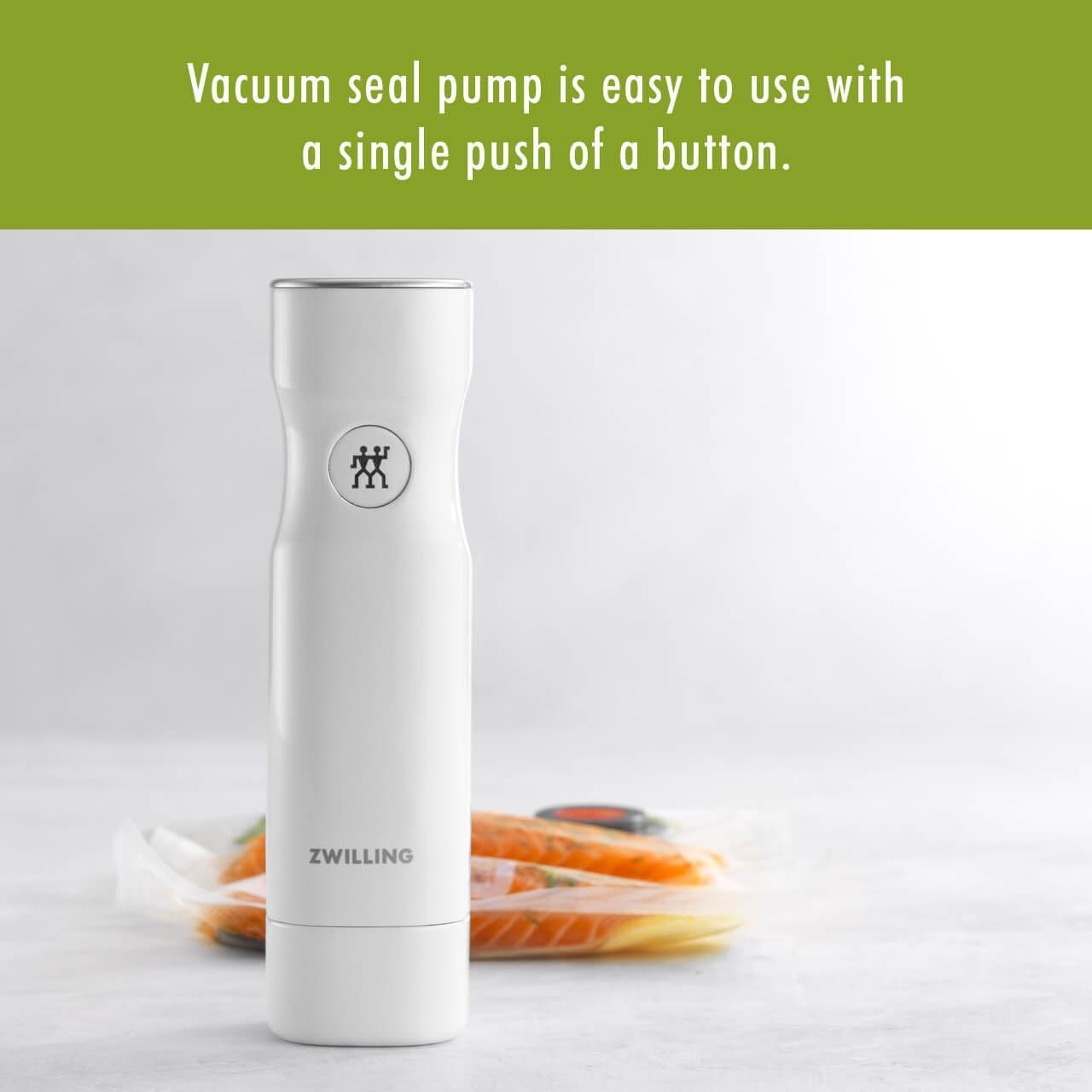 Ten bags, three sizes, endless possibilities: ZWILLING FRESH & SAVE vacuum bags are real all-rounders in the kitchen. Remove the air in seconds and your food stays fresh up to five times longer compared to conventional non-vacuum storage without losing flavour and nutrients. So you can prepare meat, fish or vegetables in advance and enjoy them later. Thanks to the different sizes, you will always find the ideal size for your food. With the zip closure, the resealable vacuum bags for food can be refilled again and again. But vacuum sealing is not only suitable for storage. Did you know, for example, that you can marinate meat and fish efficiently in vacuum? The matching marinating aid is included in the bag set. The vacuum bags are also ideal for sous-vide cooking. In addition, the freezer bags are microwave safe so you can warm or defrost food without refilling. You can also easily track your stored food with the free ZWILLING Culinary World app. So that you can always keep track of your stored goods, the bags not only have a label field, but also an individual ID number with QR code. This means that even identical refrigerated goods can be easily identified using the app. The app also inspires you with suitable recipe suggestions and lets you know when your food is about to expire. This is how smart storage can reduce food waste!